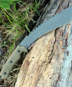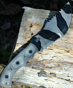 TOPS TPRBL02 Ranger Bootlegger 2, 5″ 1095 Double Edged Sawback Blade, Tan Canvas Micarta Handle