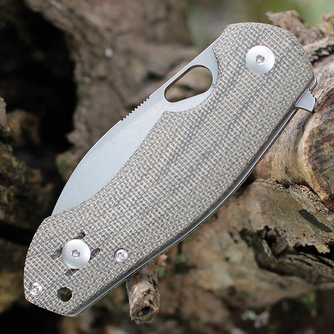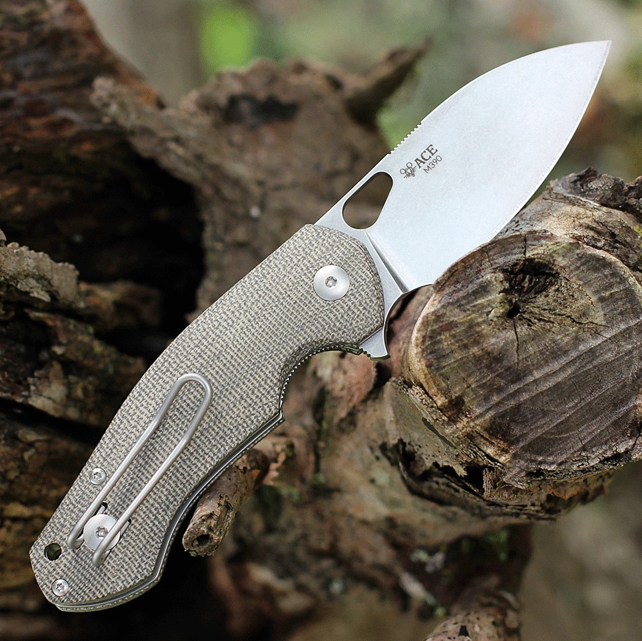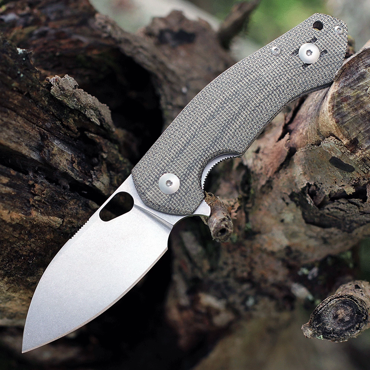 GiantMouse ACE Biblio Flipper M390 Stonewashed Green Canvas Micarta