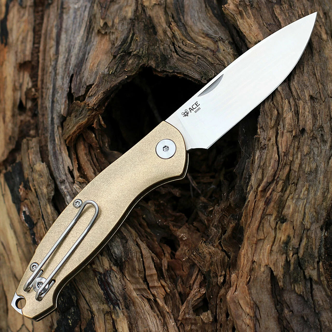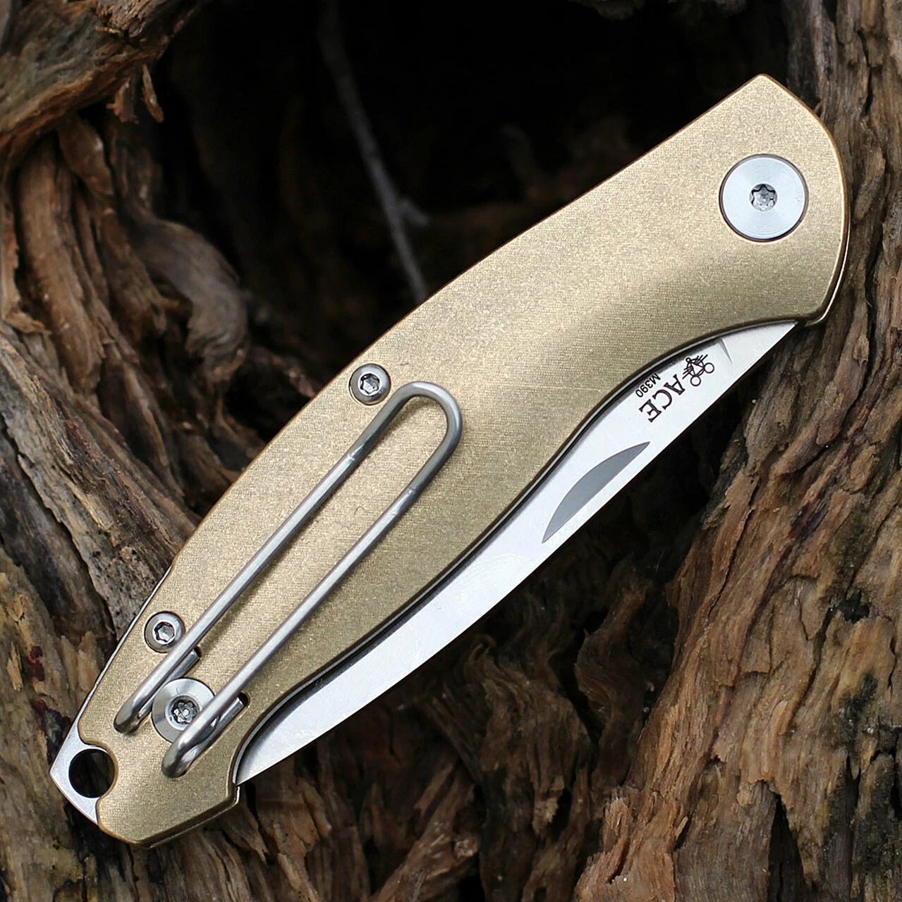 GiantMouse ACE Farley Slipjoint – 2.75″ Bholer M390 Satin Drop Blade, Brass Handle