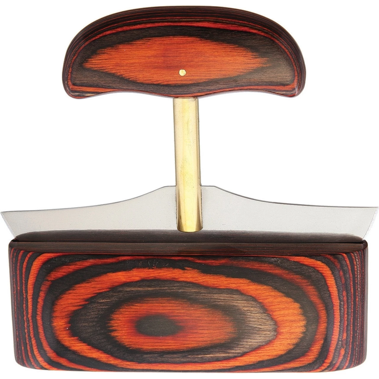 Grohmann Ulu. 5″ overall. 5 3/4″ stainless ulu blade. Rosewood handle. Rosewood display stand
