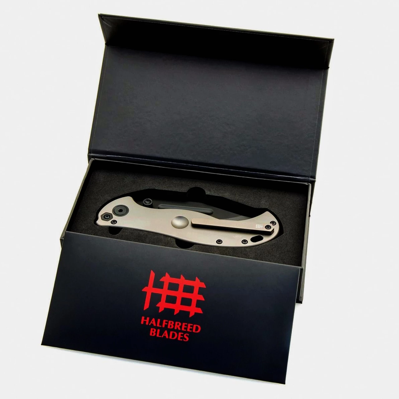 The LBF-01 (Large Bush Folder) from Halfbreed Blades, is the folding counterpart to the high-performance fixed blade knife design, the LBK-01. LBF-01 is a multipurpose field utility, flipper, folding knife, intended for use by military personnel, emergency first responders, outdoor enthusiasts, EDC gear connoisseurs, and collectors of high-quality production made tools.