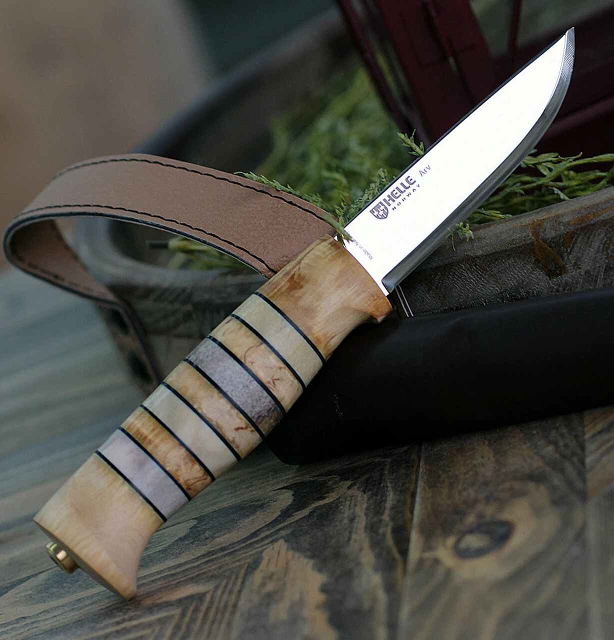 This Arv Knife was handcrafted at the Helle factory using traditional methods of manufacturing that have been passed down for generations, honoring the Scandinavian methods of combining simplicity, elegance, and function. Arv is the Norwegian word for heritage. The Scandinavian knife is more than a style or design, it’s a way of life. Triple laminated stainless steel blade with a handle of birch, staghorn, and leather. Using natural materials like curly birch wood, antler, and leather ensures that each knife has its own unique look. Features a drop point blade made of Helle’s renowned triple laminated stainless steel with a razor sharp Scandinavian grind. Each knife comes with a Nordic-style sheath made of rich tanned leather. 7½” total length with 3½” blade. Norway