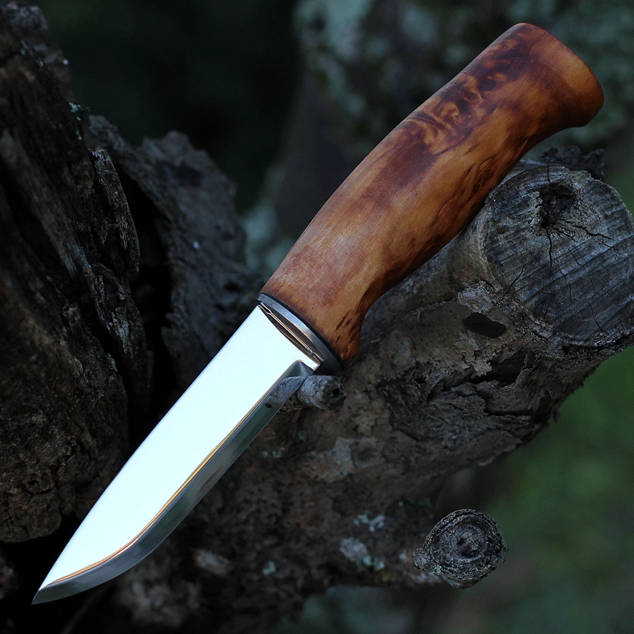 Helle Fjellkniven, Triple Laminated Stainless Steel, Curly Birch Handle