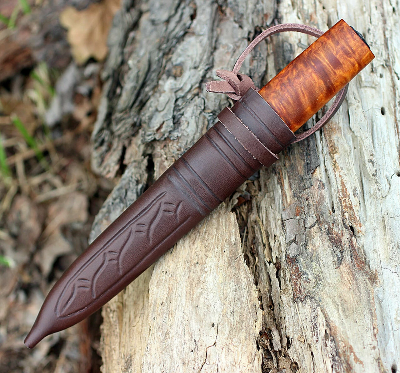 Helle Viking 4.33 in. Triple Laminated Stainless Steel Blade, Curly Birch Handle