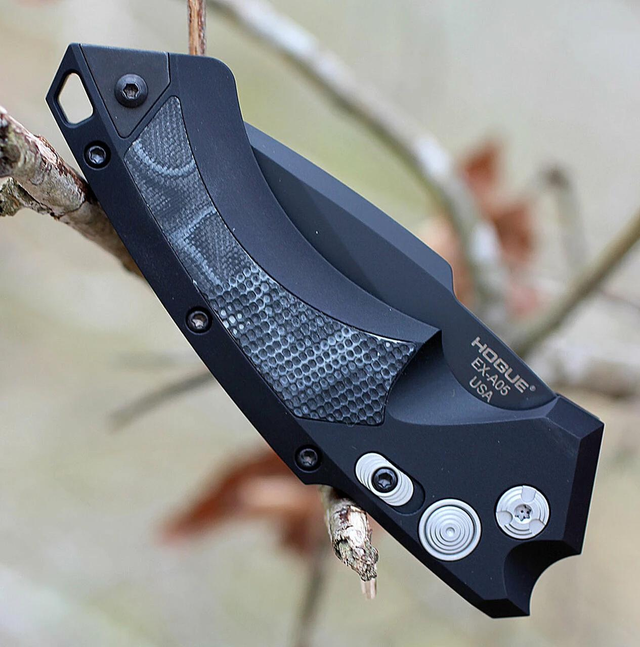 Hogue Knives is pleased to announce the expansion of their automatic knife line to include new EX-A05 models. “Our X5 folder, which was introduced last year, proved to be so popular that our customers wanted to see the same unique design in an automatic version,” said Hogue managing partner and master toolmaker Jim Bruhns. “The result is a lightning fast spring action knife that is a reliable work horse each and every time you need it.”