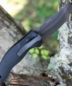The Deka folder features G10 handles with a variety of attractive patterns. The knife comes with modified Wharncliffe and clip point variations to fit your needs and tastes. The ambidextrous blade is easy to deploy thanks to the included thumstuds. The knife comes with the ABLE-Lock system that secures the knife while open or closed. This version has the modified Wharncliffe blade with a black cerakote finish and a solid black coloring on the G10 handles.