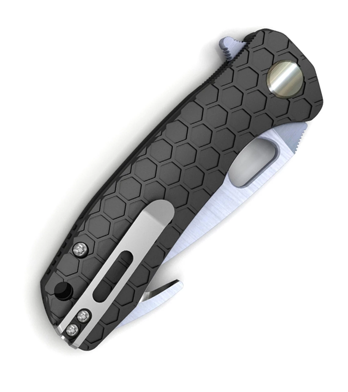 Honey Badger’s friction-less opening and closing action, facilitated by two opposing roller bearings containing a total of 18 ball bearings. Very few knives ever achieve such an immaculate action, and makes using them a real pleasure.
