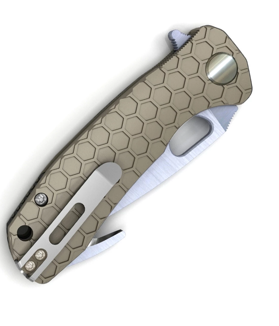 Honey Badger Knives Large Hook Flipper HB1252, 3.63″ 8Cr13Mov Hook Blade, Tan FRN Handle