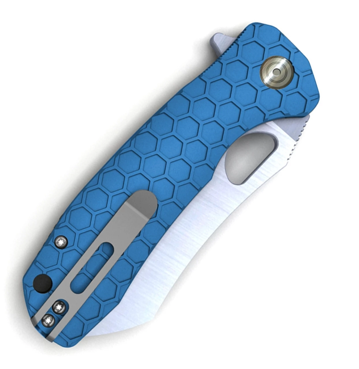 Honey Badger Knives Large Warncleaver Flipper HB1034, 3.63″ 8Cr13MoV Satin Warncleaver Plain Blade, Blue FRN Handle