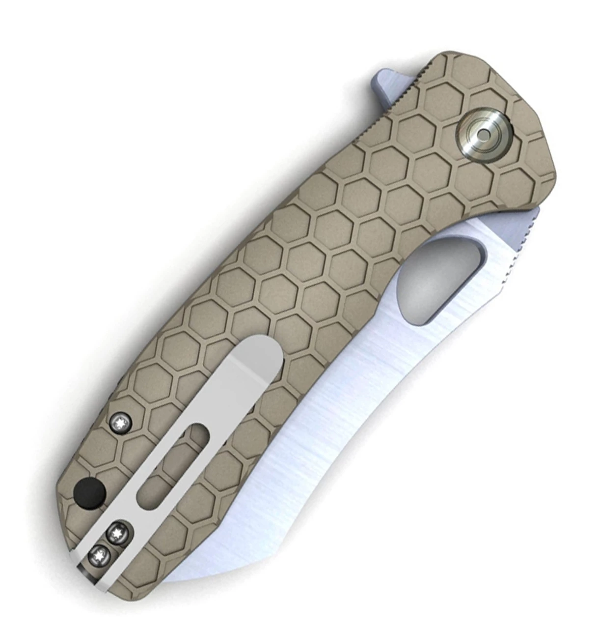 Honey Badger Knives Medium Warncleaver Flipper HB1039, 3.19″ 8Cr13MoV Satin Warncleaver Plain Blade, Tan FRN Handle