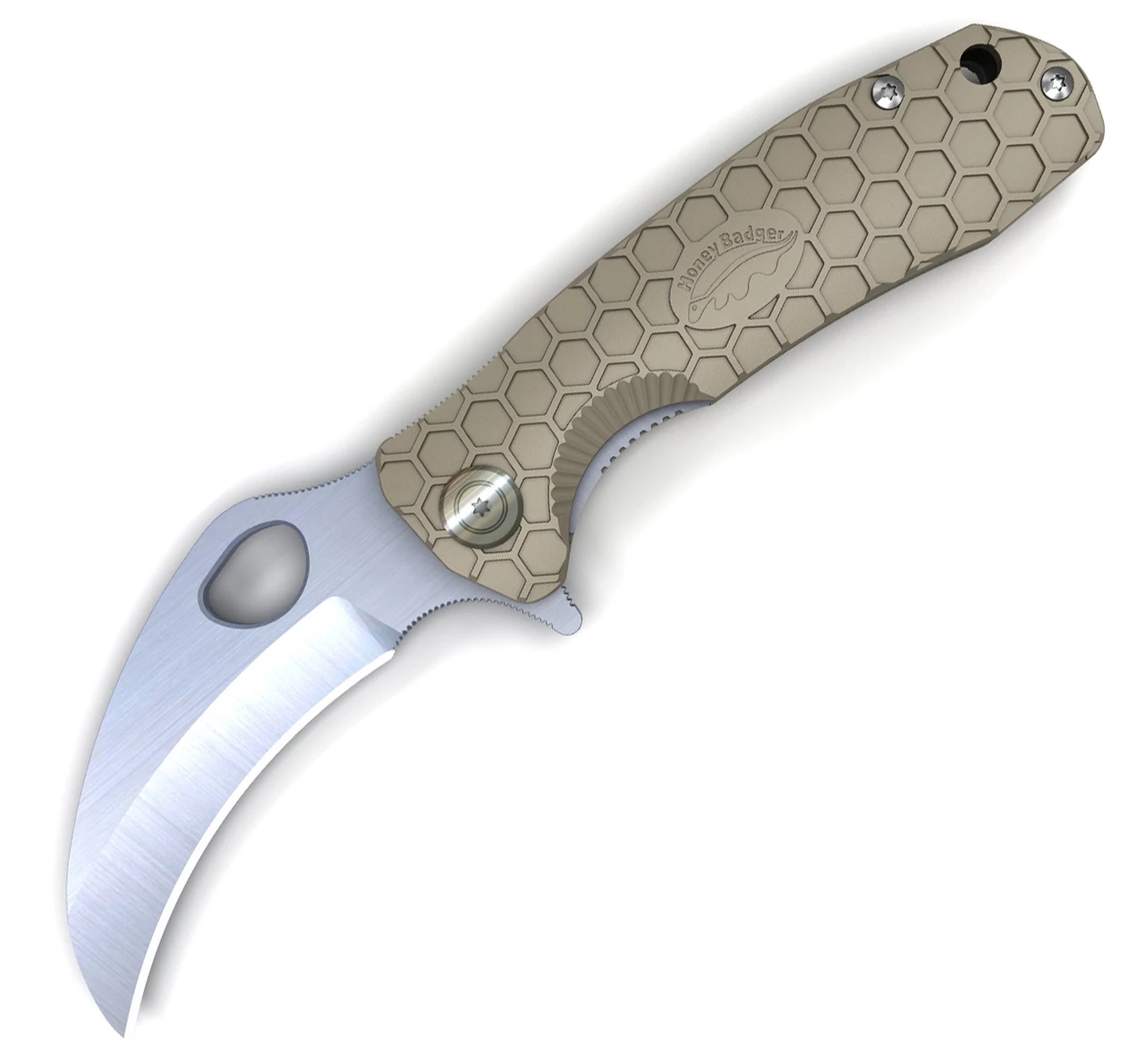 Honey Badger Knives Small Claw Flipper HB1142, 2.75″ 8Cr13Mov Claw Plain Blade, Tan FRN Handle