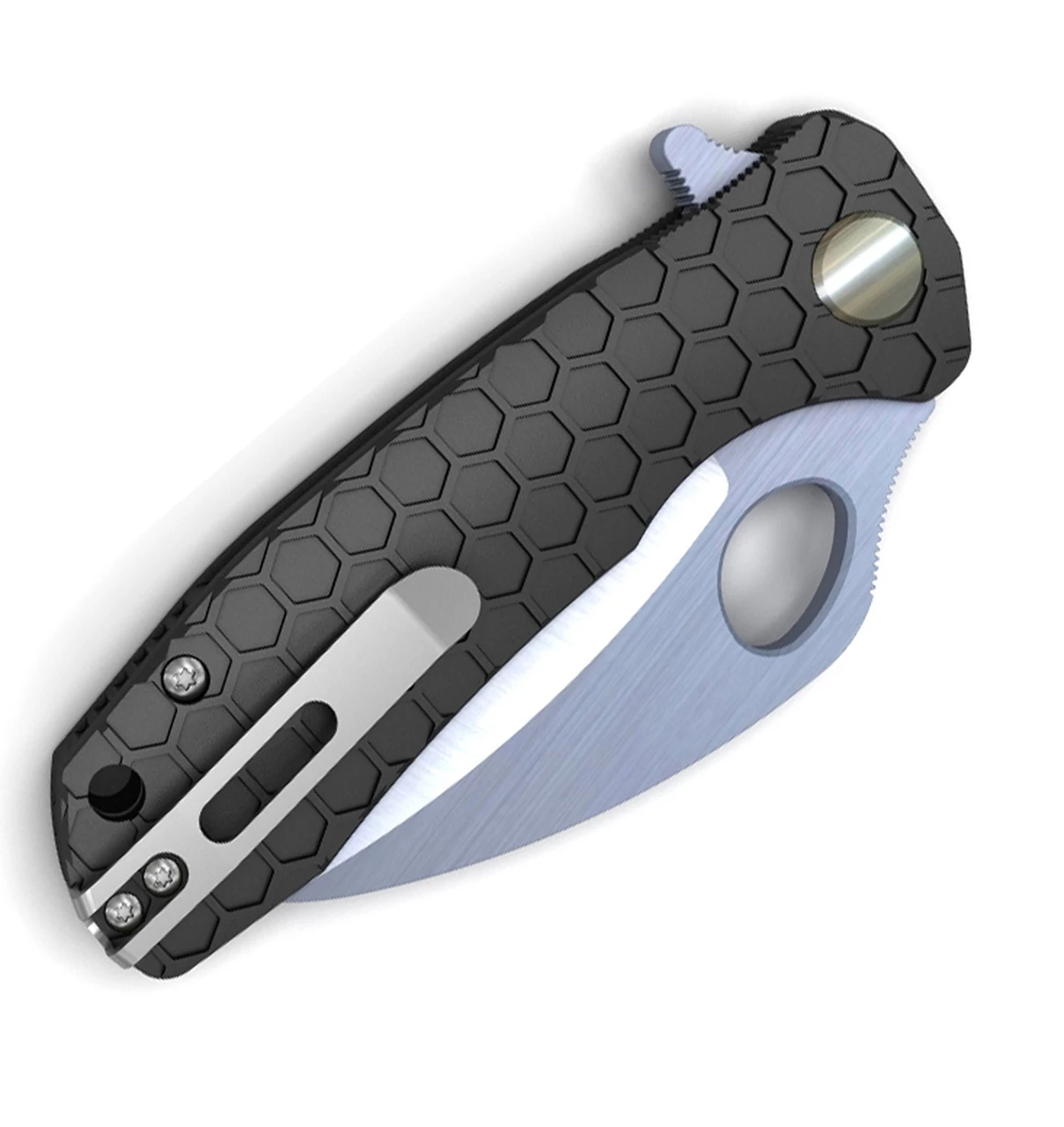 Honey Badger Knives Small Claw Flipper HB1151, 2.75″ 8Cr13Mov Claw Serrated Blade, Black FRN Handle
