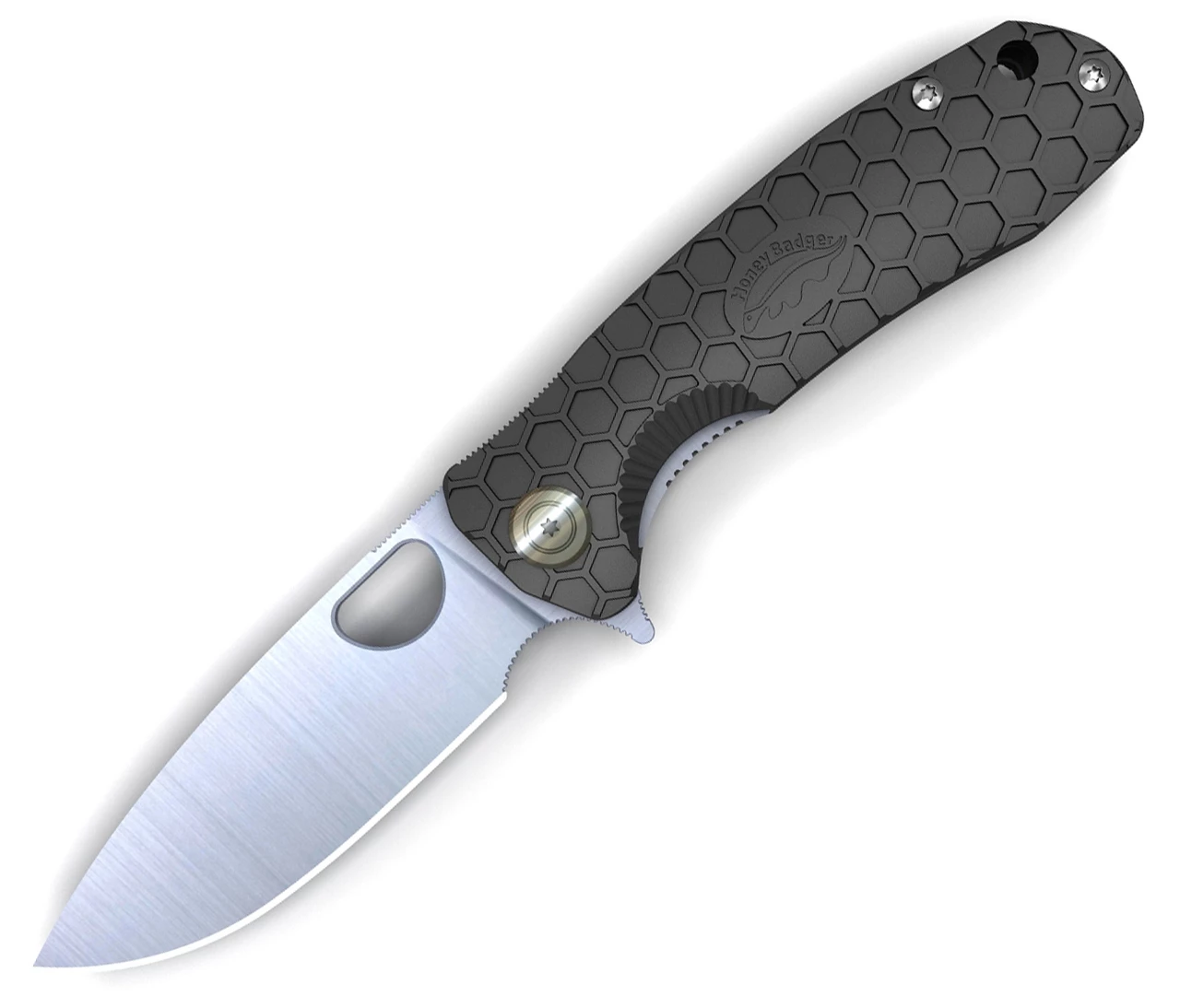 Honey Badger Knives Small Flipper HB1021, 2.81″ 8Cr13MoV Satin Drop Point Plain Blade, Black FRN Handle