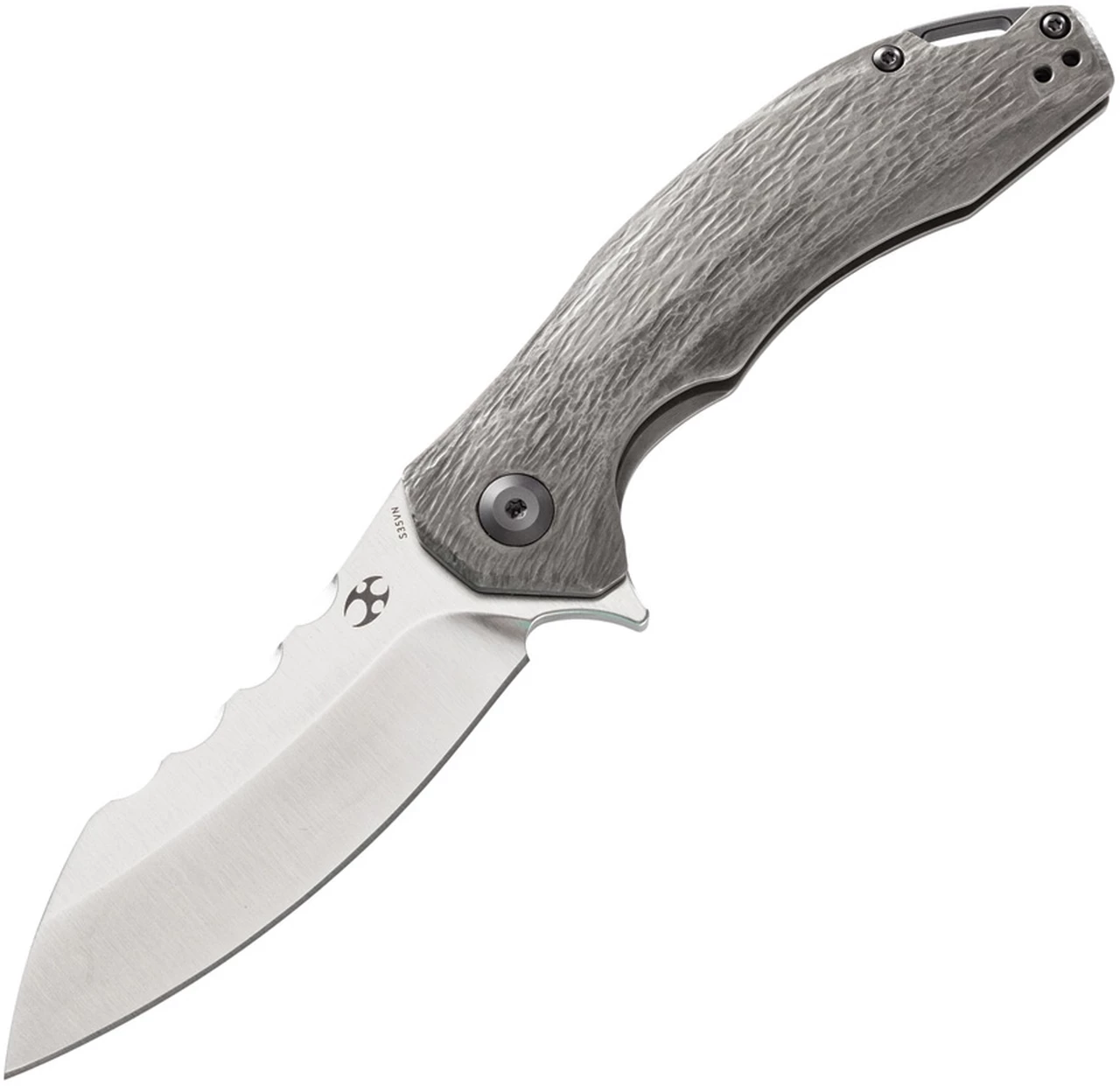 Kansept Knives, K1002W, Spirit Flipper, 3.5″ CPM-S35VN Satin Sheepsfoot Blade, Sculpted Woodgrain Titanium Handles