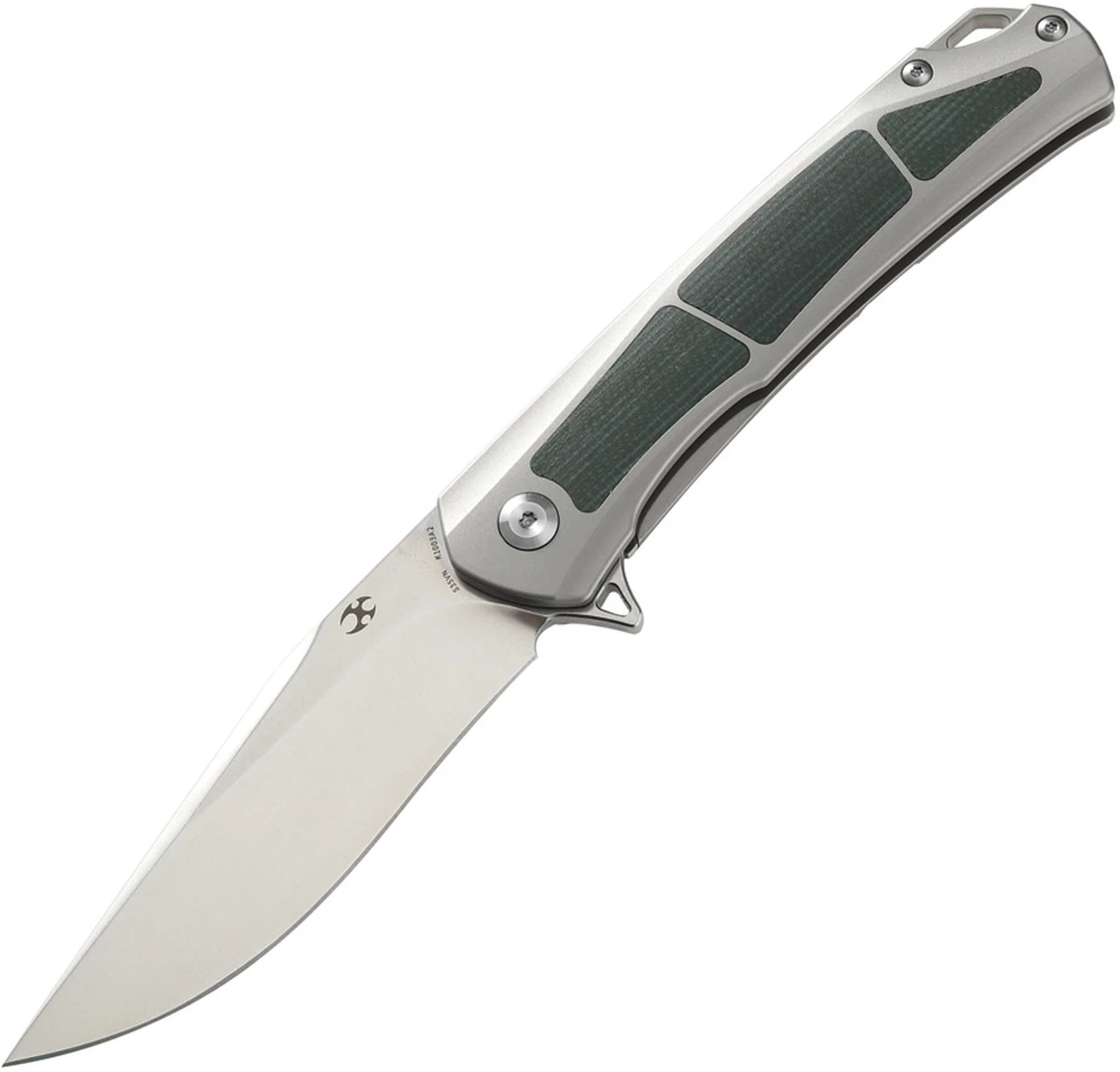 Kansept Knives, K1003A2, Sprite Frame Lock Knife, 3.5″ CPM-S35VN Stonewashed Clip Point Blade, Titanium with Green Micarta Inlay Handles