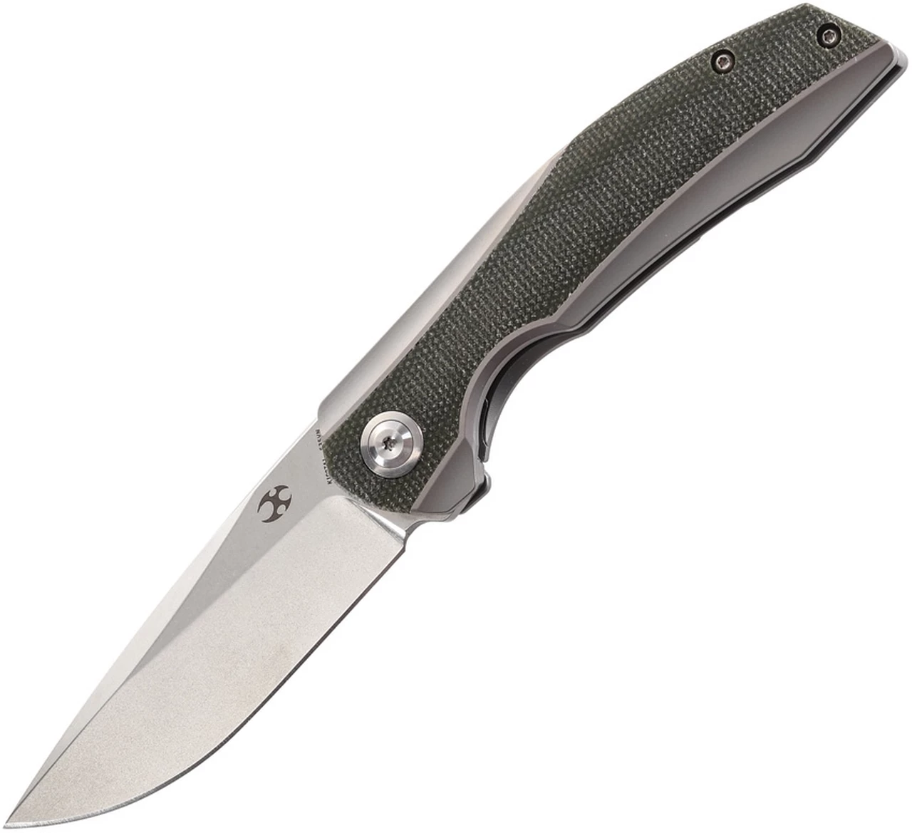 The Accipiter is the first front flipper in Kansept product line which is a stunning design for managing any daily cutting chore. Accipiter K1007A1 is equipped with an ergonomic titanium handle with OD green canvas micarta inlay on the front side. It has a drop point blade made from dependable S35VN steel with stonewashed finish.The blade flipper provides rocketing blade deployment with a reinforced frame lock for strong blade lock up. A comfortably contoured titanium pocket clip completes the outstanding design.