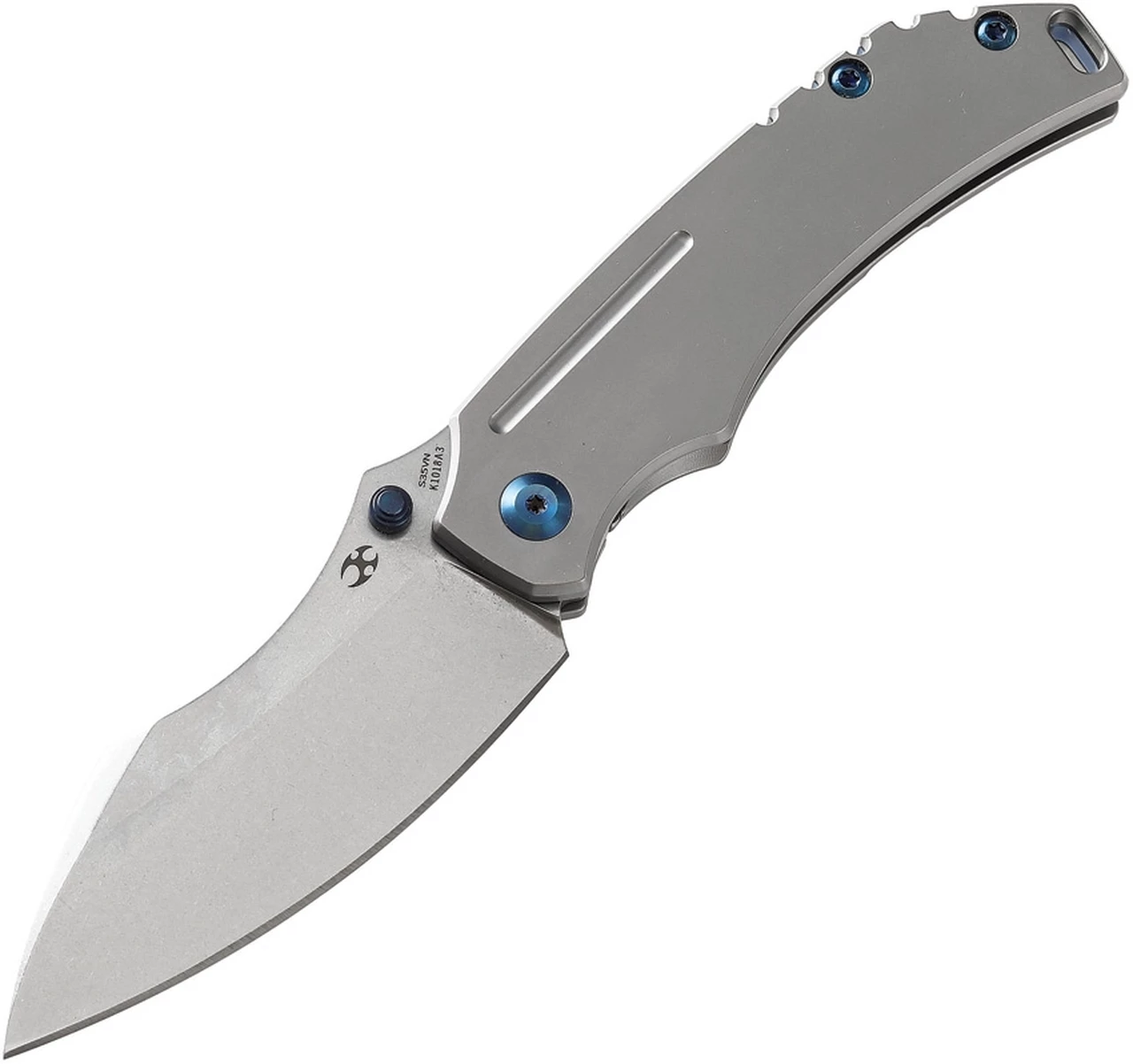 Kansept Knives K1018A3 Pelican EDC, 3″ Stonewashed CPM- S35VN Drop Point Blade, Gray Titanium Handle