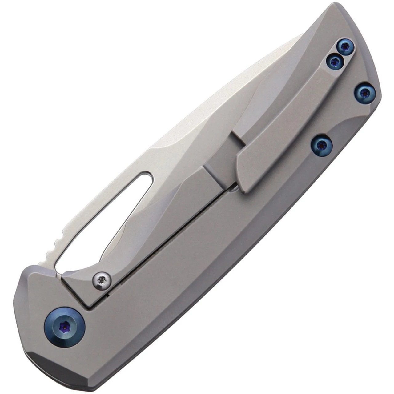 - Chamfered titanium handles in gray finish for a smooth gripping surface that is comfortable in the pocket or hand.
