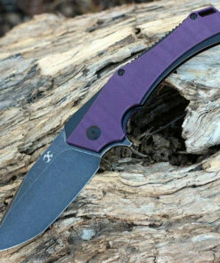 Kansept Hellx Folding Knife (T1008A6) – 3.6″ D2 Black Stonewashed Drop Point Blade,Purple G10 Scales, Black Stainless Steel Handle