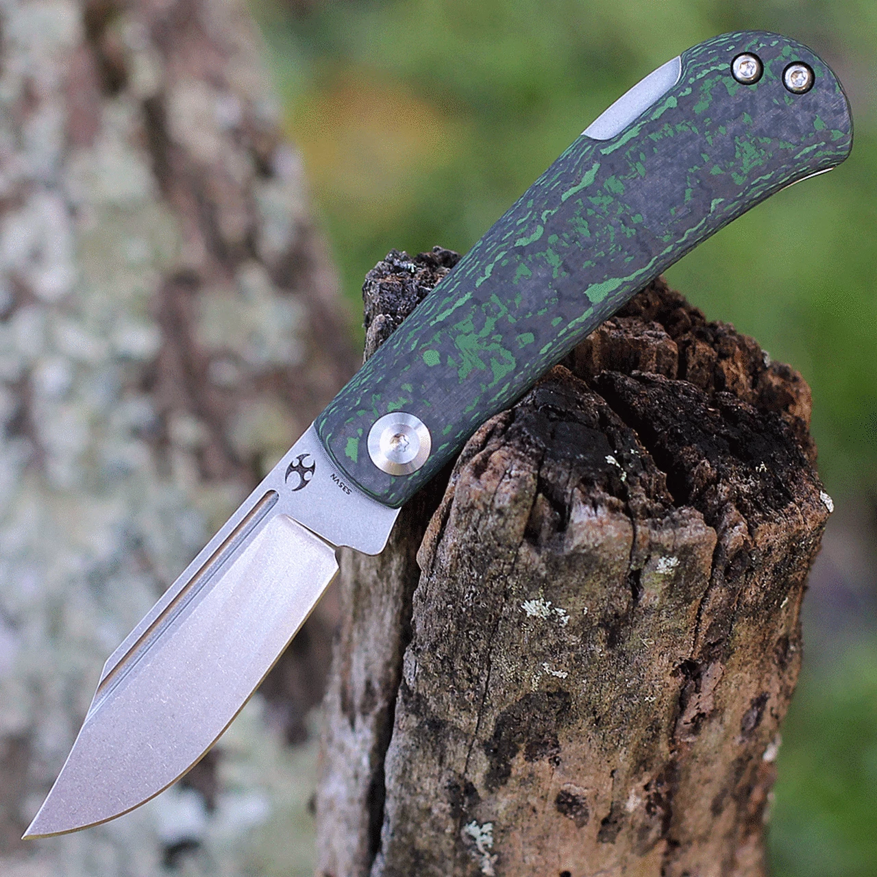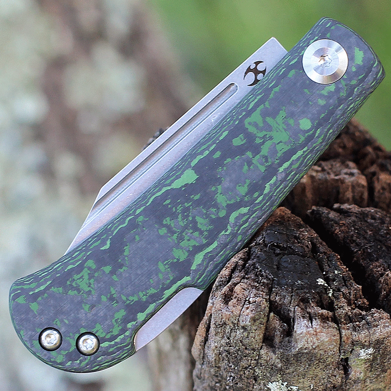 Kansept Wedge Lock Back – (K2026B4) – 2.9″ CPM-S35VN Stonewashed Clip Point Blade, Green Jungle Wear Carbon Fiber