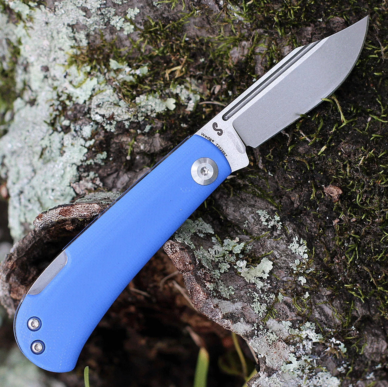 Kansept Knives Wedge Lock Back (T2026B7) – 2.9″ 154CM Stonewashed Clip Point Blade, Blue G-10 Handle
