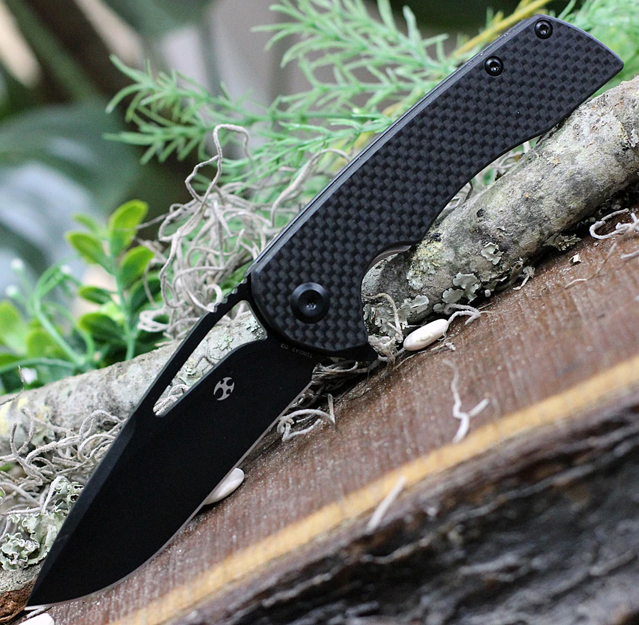 Kryo T1001 is a budget-friendly product line newly released by Kansept. The Kansept T1001A3 is built with a black coating D2 drop point blade and black carbon fiber handle.The D2 blade provides a reliable edge that delivers solid cutting performance in outdoor and urban environments alike. The Ball Bearing system provides smooth opening and the liner lock firmly secures the blade in the open position.