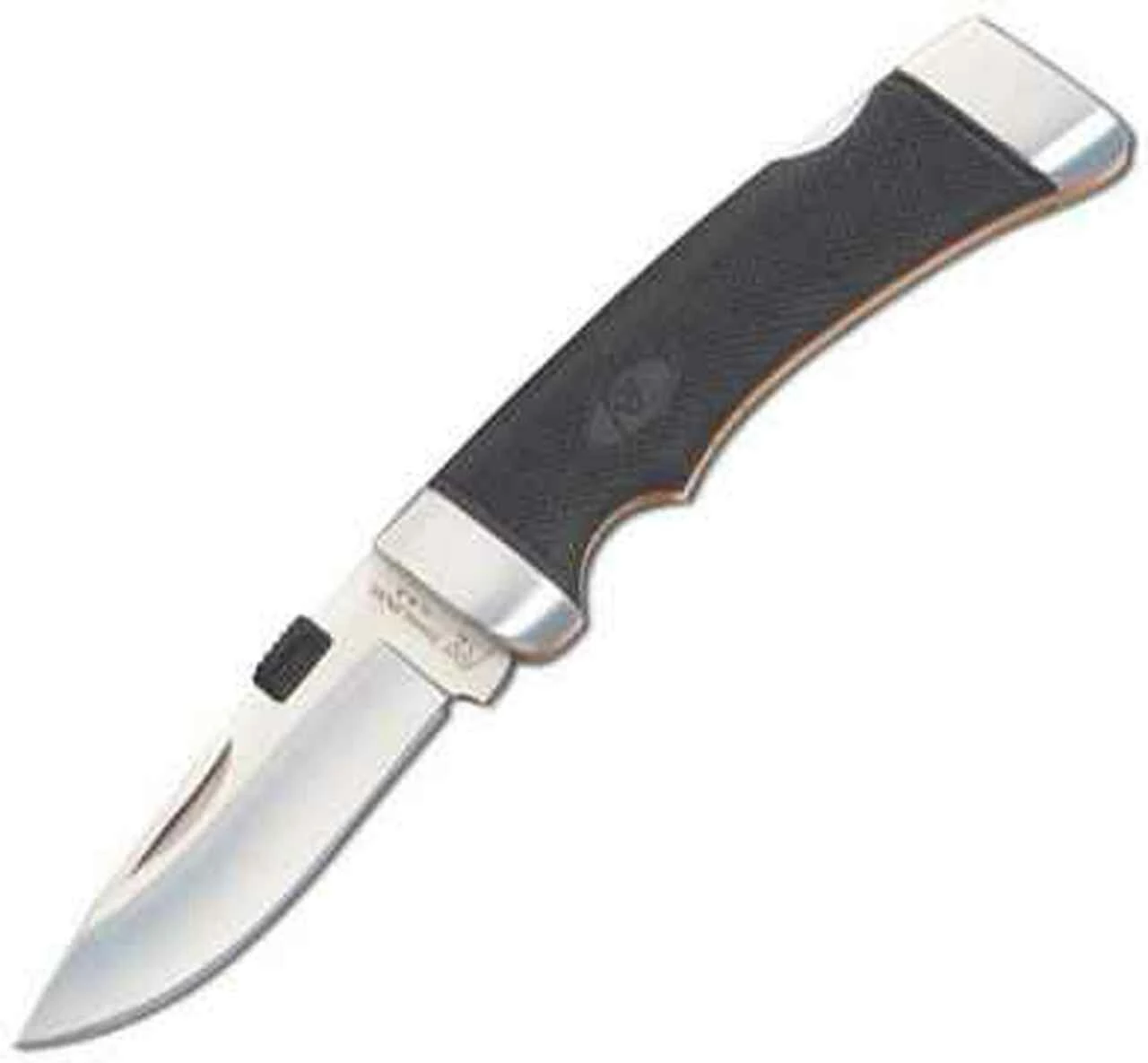Katz Cheetah Series Small Lockback. 4″ closed. 2 7/8″ XT-80 stainless satin finish drop point blade with thumb lug. Black Kraton diamond checkered handles with stainless bolsters. Black leather fast draw belt sheath.