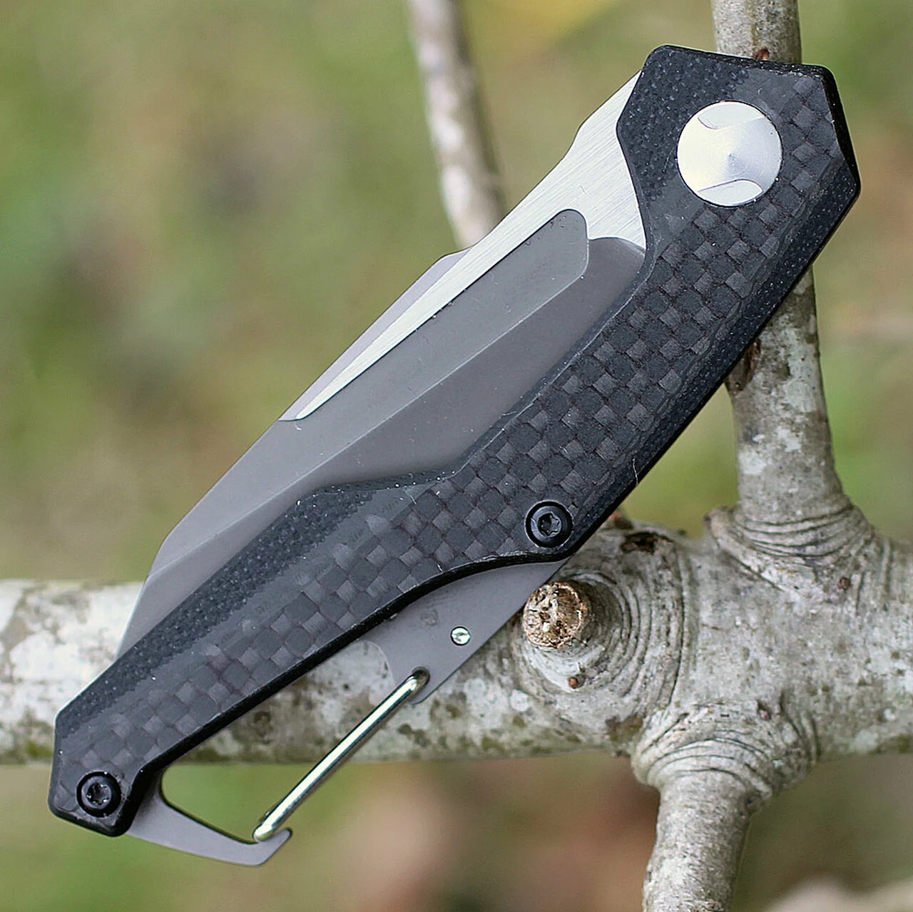 - Handle: G-10 with carbon fiber overlay front, steel back