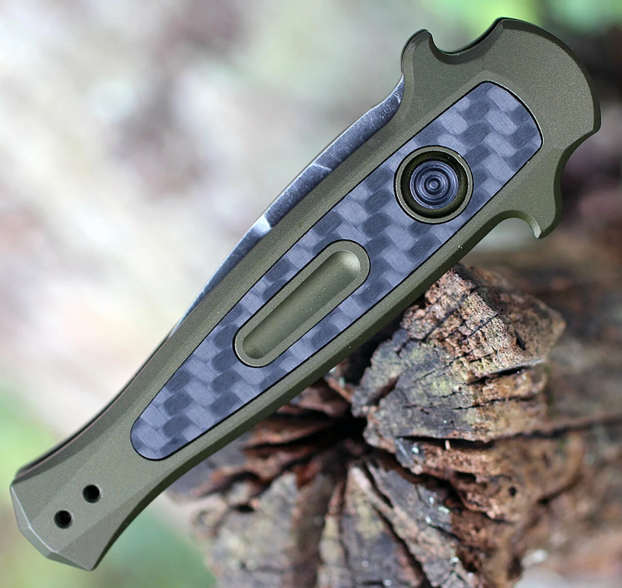 - Handle: 6061-T6 aluminum, olive green anodized, carbon fiber insert front