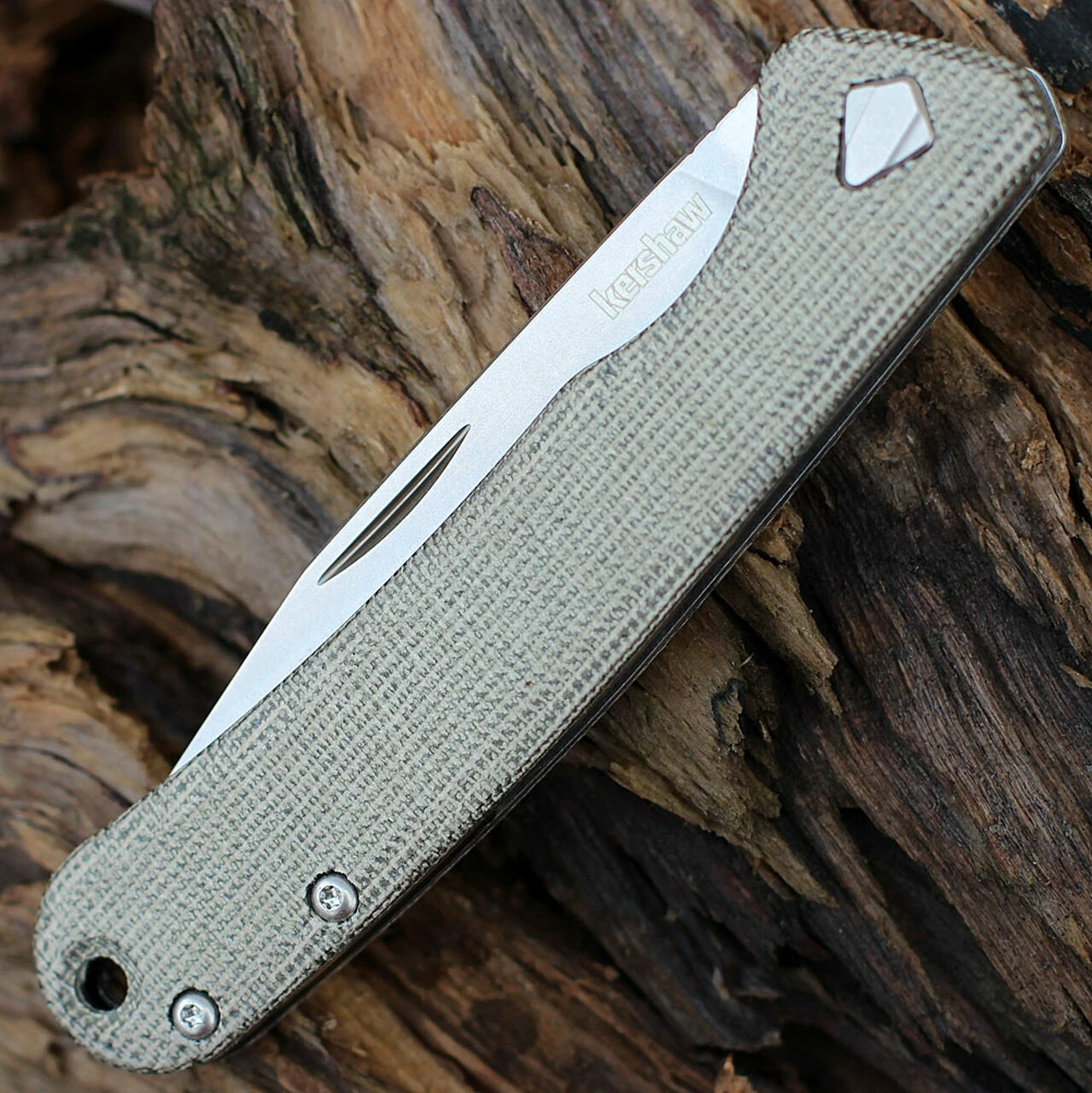 Kershaw Federalist (4320) – 3.25″ CPM 154 Stonewash Clip Point Blade, Green Micarta Handle