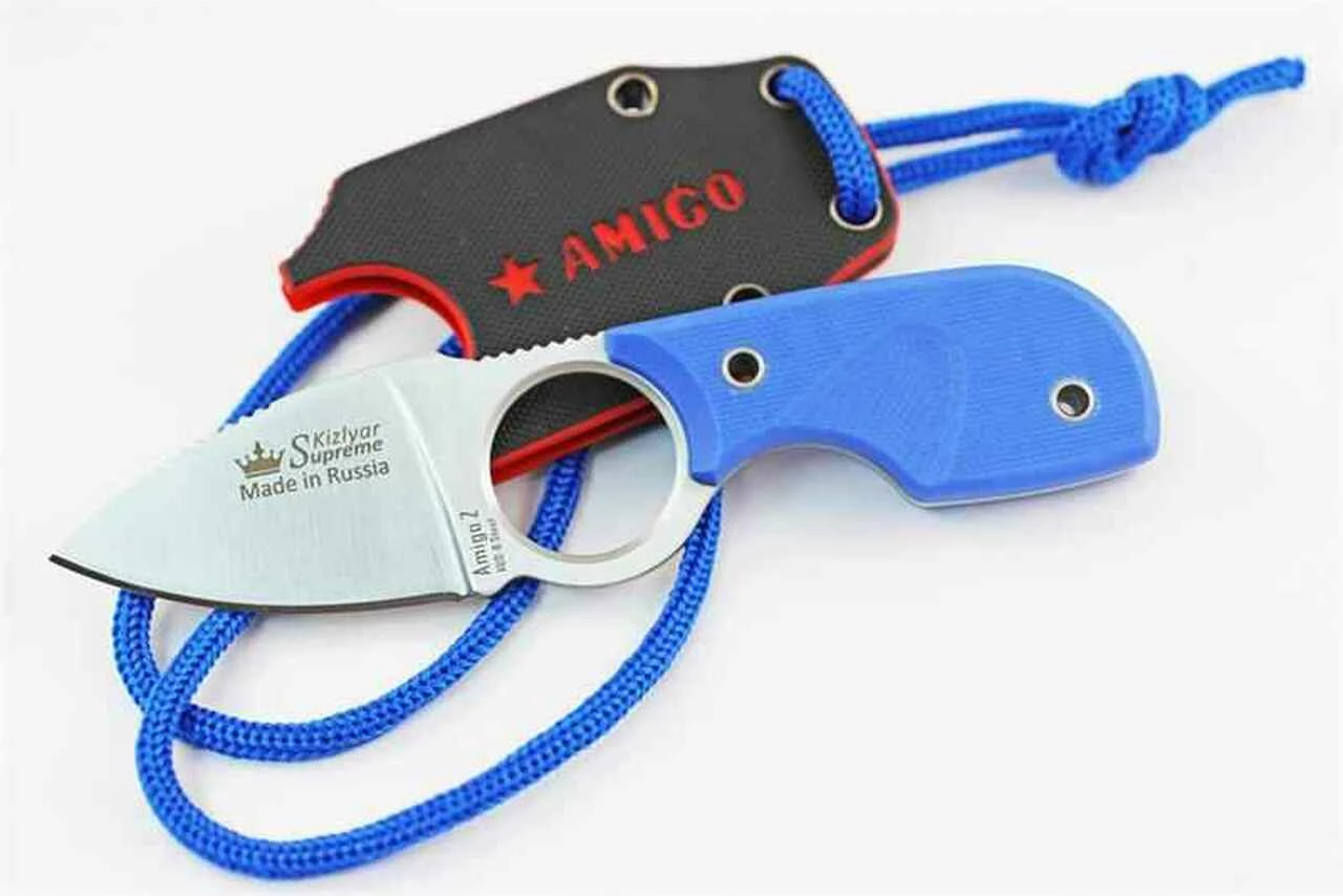 Kizlyar Supreme Amigo-Z Kneck Knife, AUS-8 Steel, Blue G-10 Handle