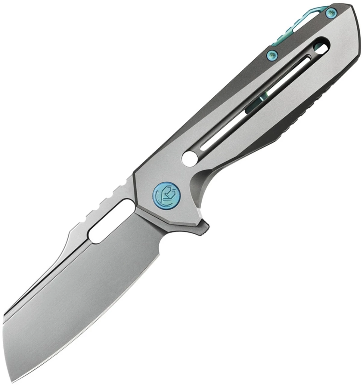 Kubey Atlas (KB290A) – 3.74″ CPM-S35VN Sandblasted Sheepsfoot Blade, 6AL4V Titanium Handle w/ Blue Accents