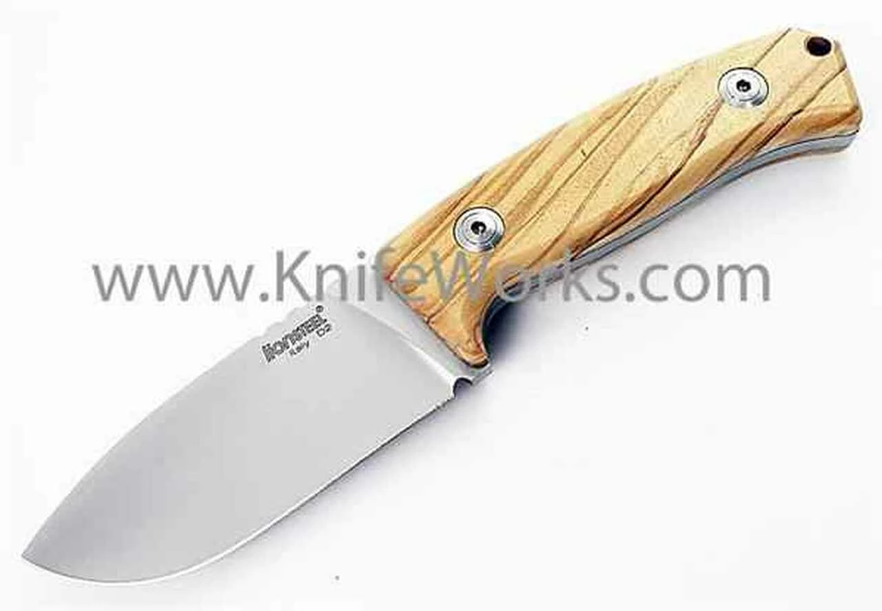 Lion Steel M2 Fixed Blade Hunting Knife, Olive Wood Handle, w/ Leather Sheath