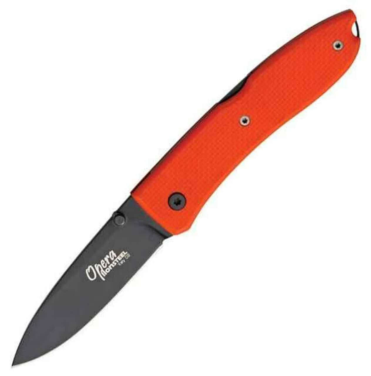 lion STEEL Opera Folding Knife, Orange G-10 Handle, Black Blade, Plain Edge