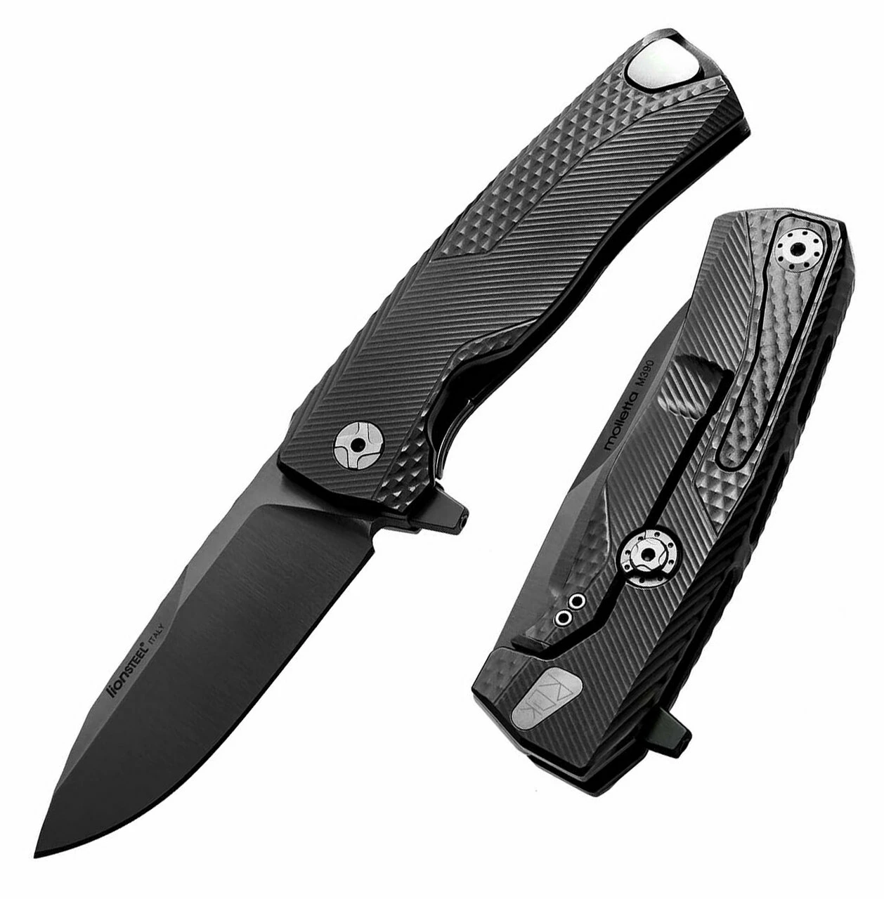 Designed by Molletta, ROK features an M390 sintered steel flipper which can be removed with the proper supplied key. The locking bar is reinforced with a hardened steel insert, so that it can’t be damaged by the blade.