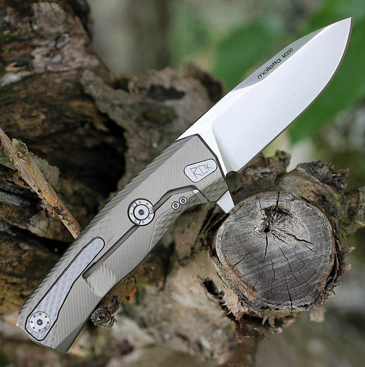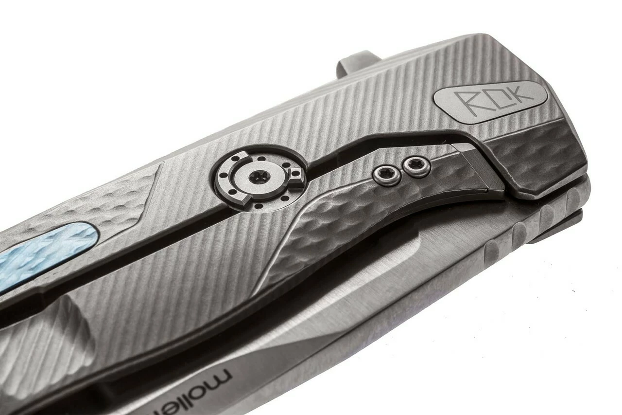 Designed by Molletta, ROK features an M390 sintered steel flipper which can be removed with the proper supplied key. The locking bar is reinforced with a hardened steel insert, so that it can’t be damaged by the blade.