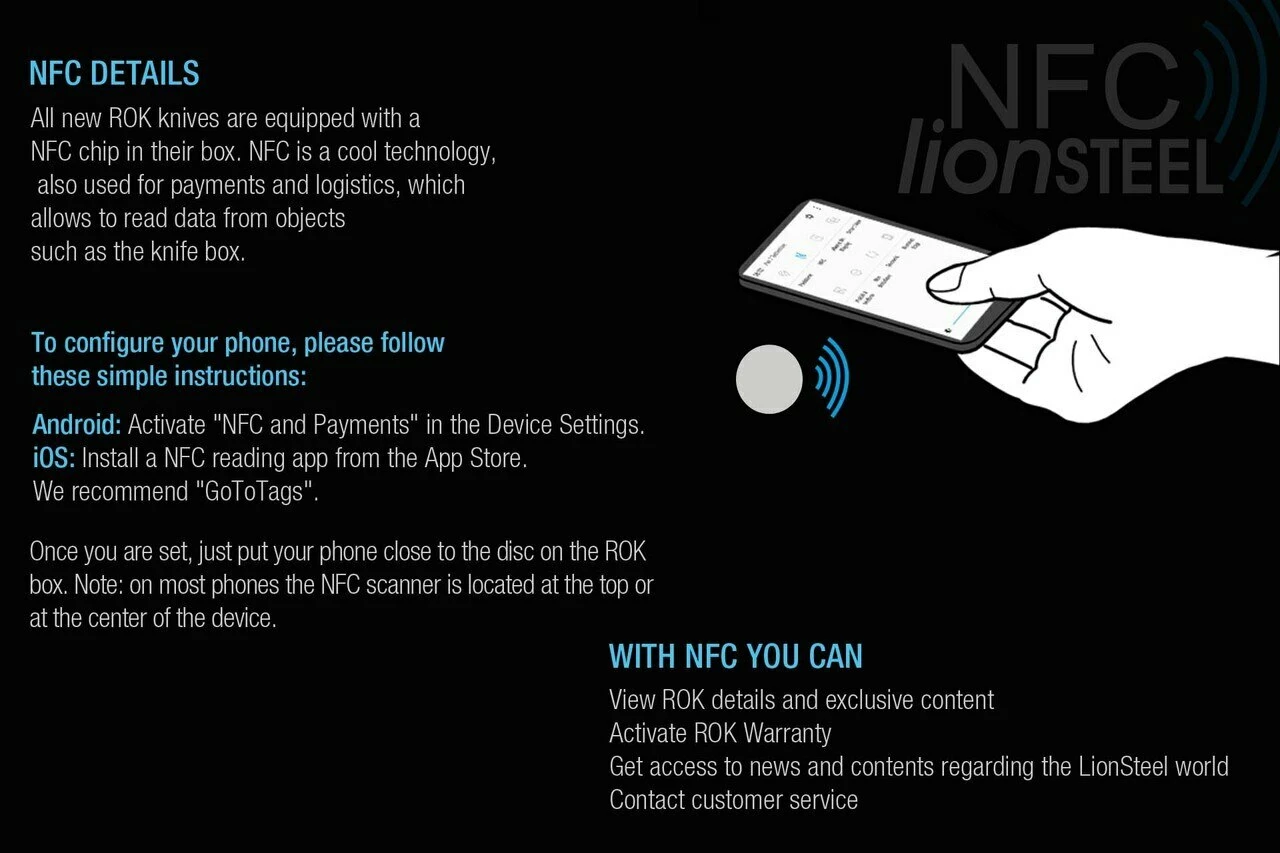 ROK is supplied in a cardboard box which is provided with the exclusive NFC technology that allows an easy access to product information, maintenance, manufacturing processes and general information about lionSTEEL directly from your smartphone.
