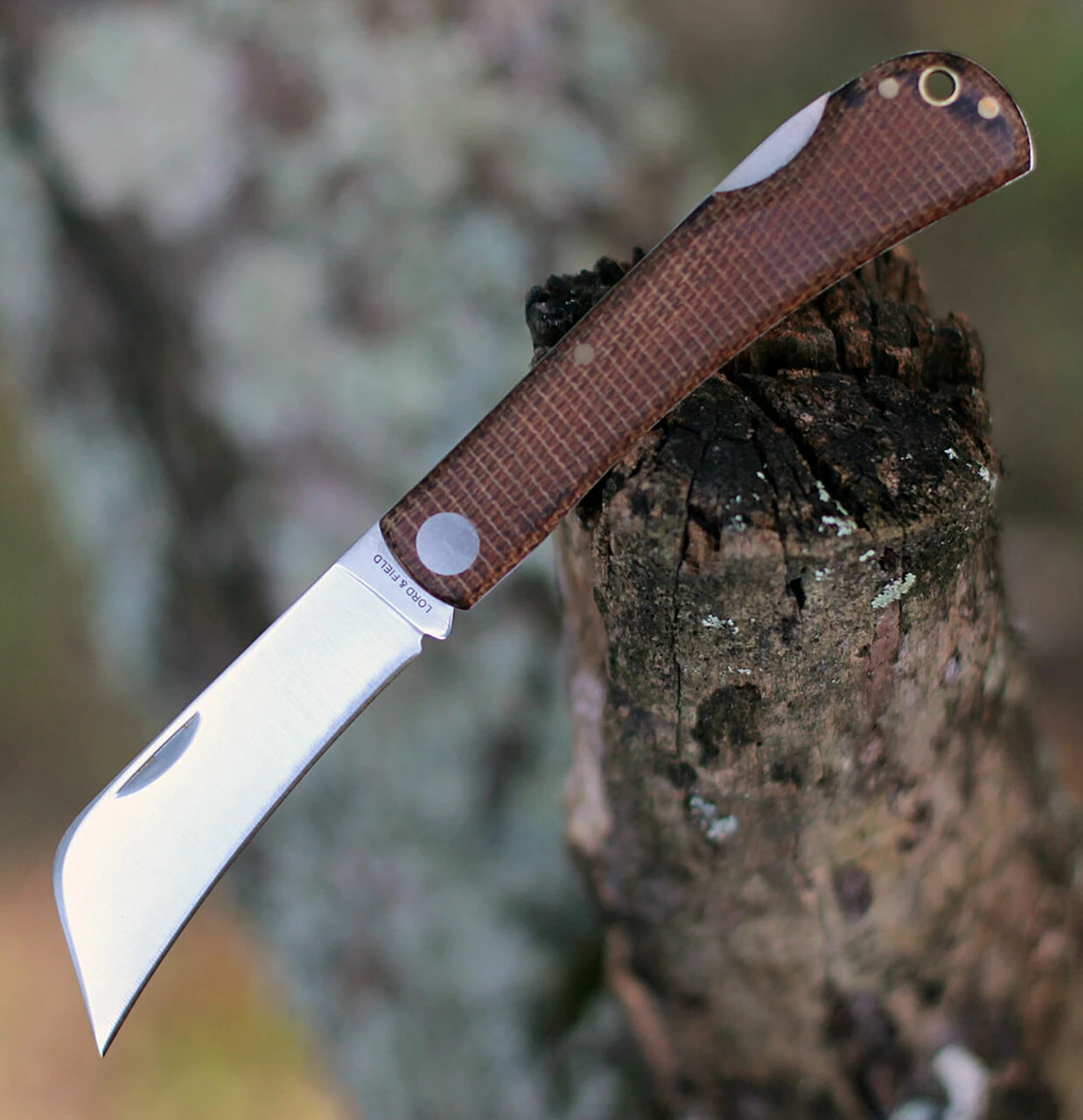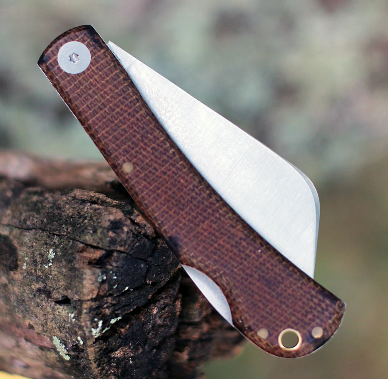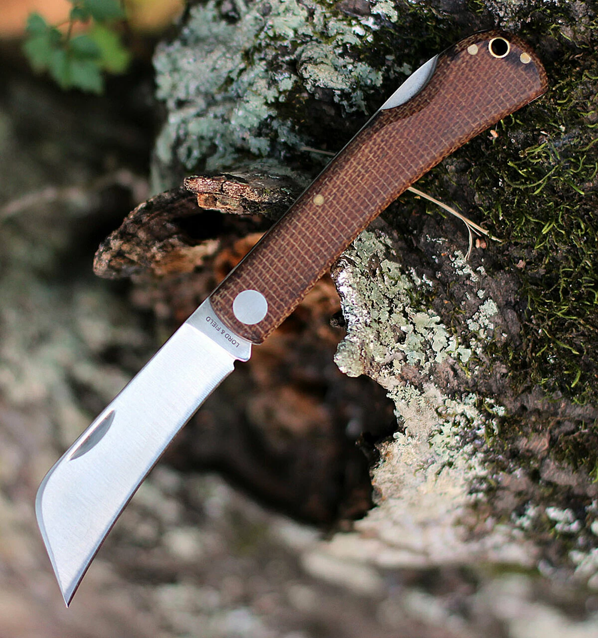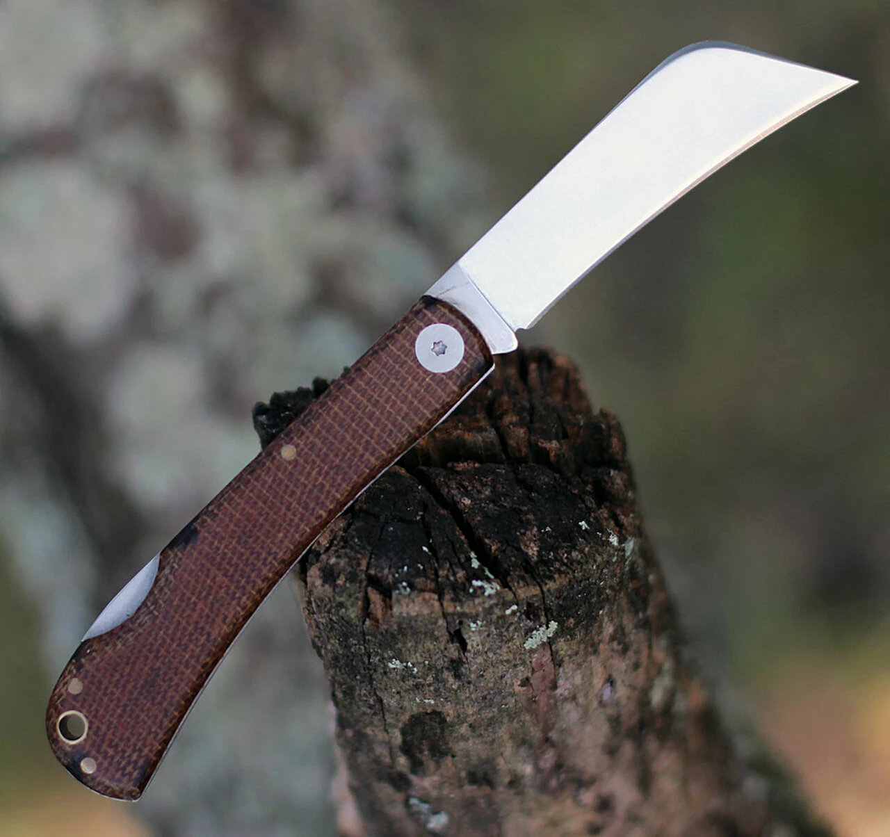 This hawkbill folder with micarta scales is an excellent pocket bush craft knife for processing foraged items, carving tasks and smaller bush craft needs.