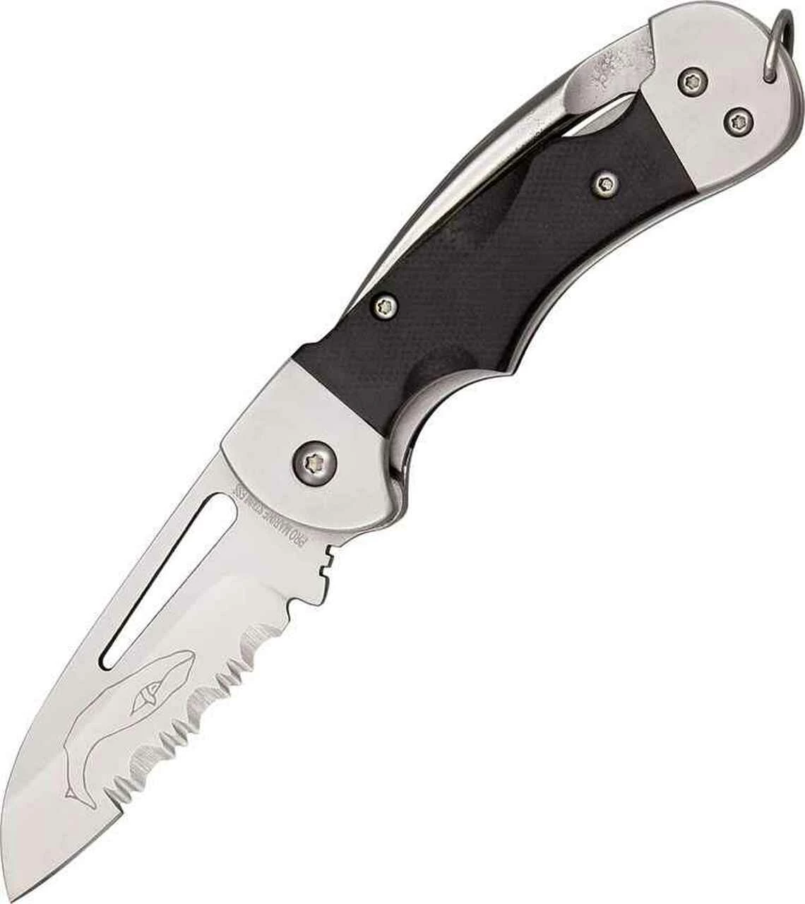Myerchin Generation 2 Crew Pro – Professional Series. 3 5/8″ closed linerlock. 2 1/2″ German Pro Marine stainless three-quarter serrated sheepsfoot blade with shackle slot. Black G-10 handles with stainless bolsters and 1 7/8″ locking stainless marlin spike. Lanyard hole with keyring. Stainless pocket clip with slot cutout design. Black nylon belt sheath. Serial numbered.