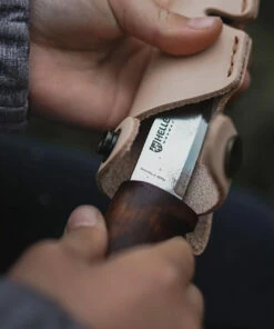 Myerchin Generation 2 Pro Wood – Offshore System-Traditional Series. 8 1/2″ overall. 4″ German Pro Marine stainless sheepsfoot blade with shackle slot and thumb ridge. Full tang. Brown cocobolo wood handles. Lanyard hole. Includes 7″ overall stainless Marlin Spike with shackle slot. Embossed black leather belt sheath. Serial numbered.