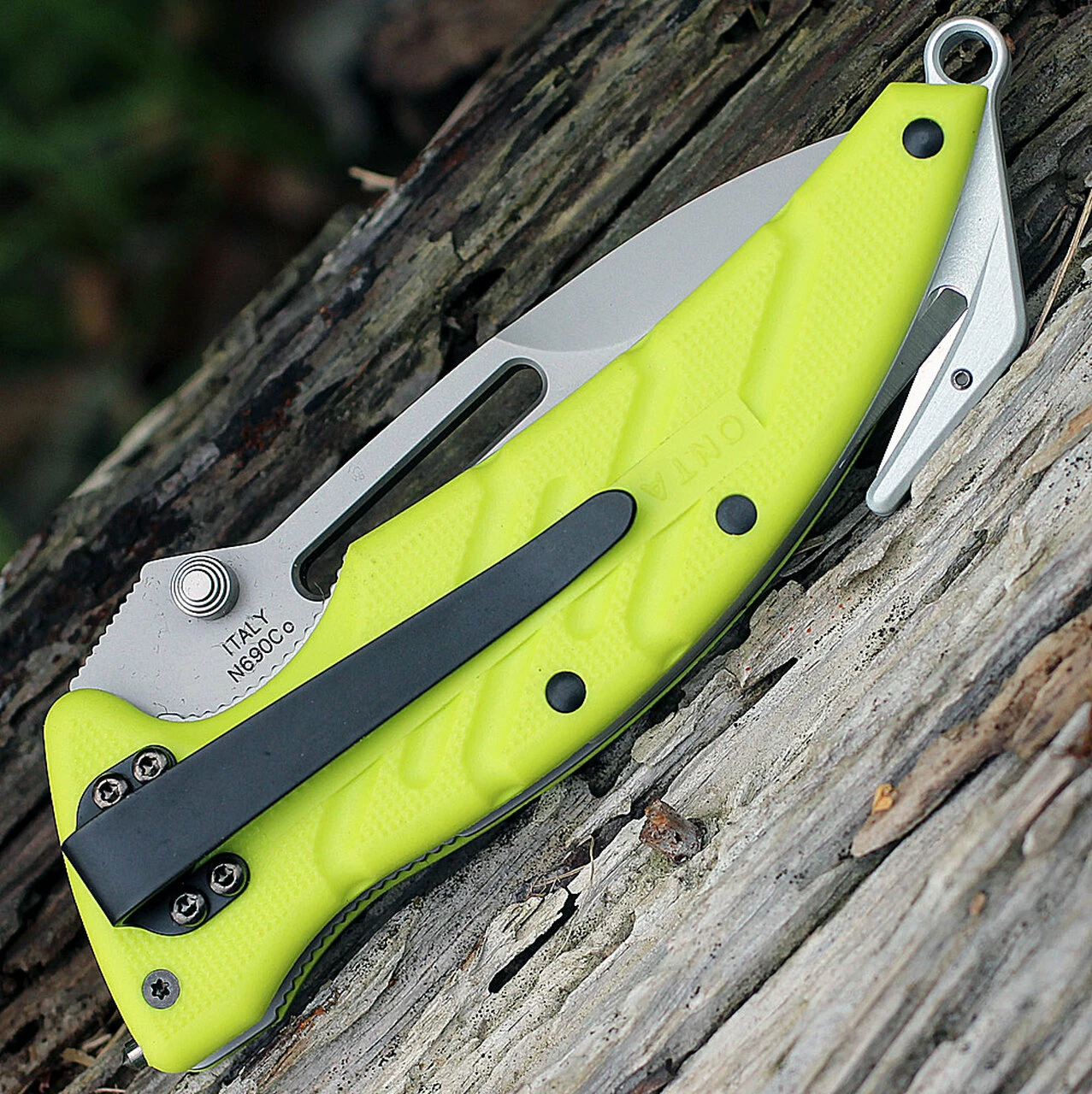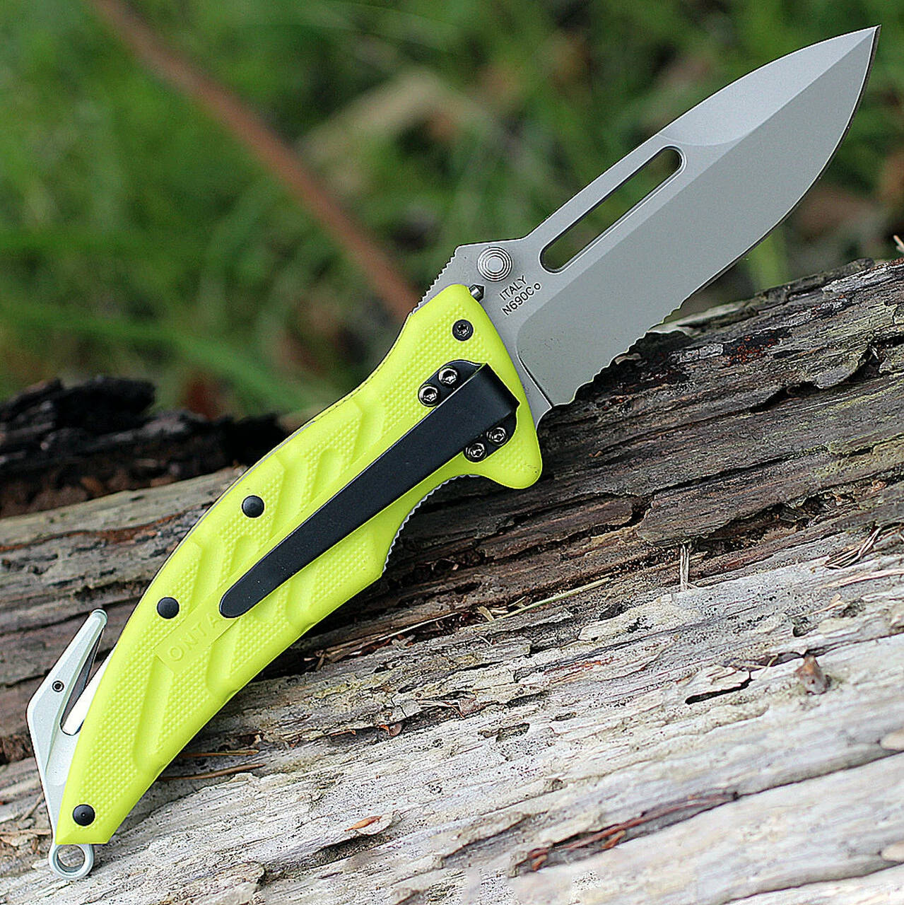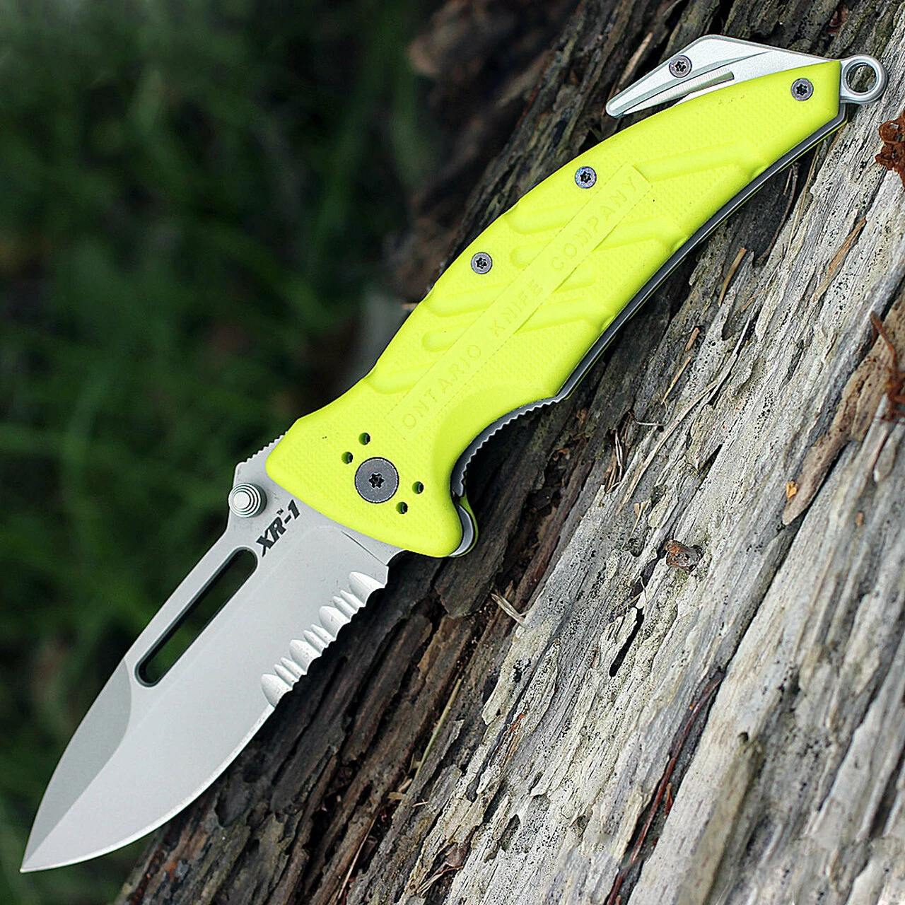 Ontario 8763 XR-1 Extreme Rescue, 3.375″ N690Co Serrated Blade, Safety Green Zytel Handle