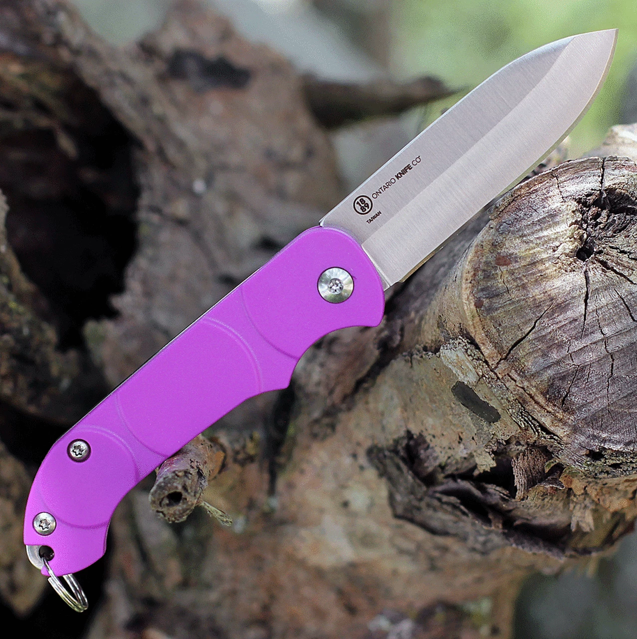 Ontario Knife Co. Traveler 8901PUR, 2.25″ Stainless Steel Satin Plain Blade, Purple Plastic Handle
