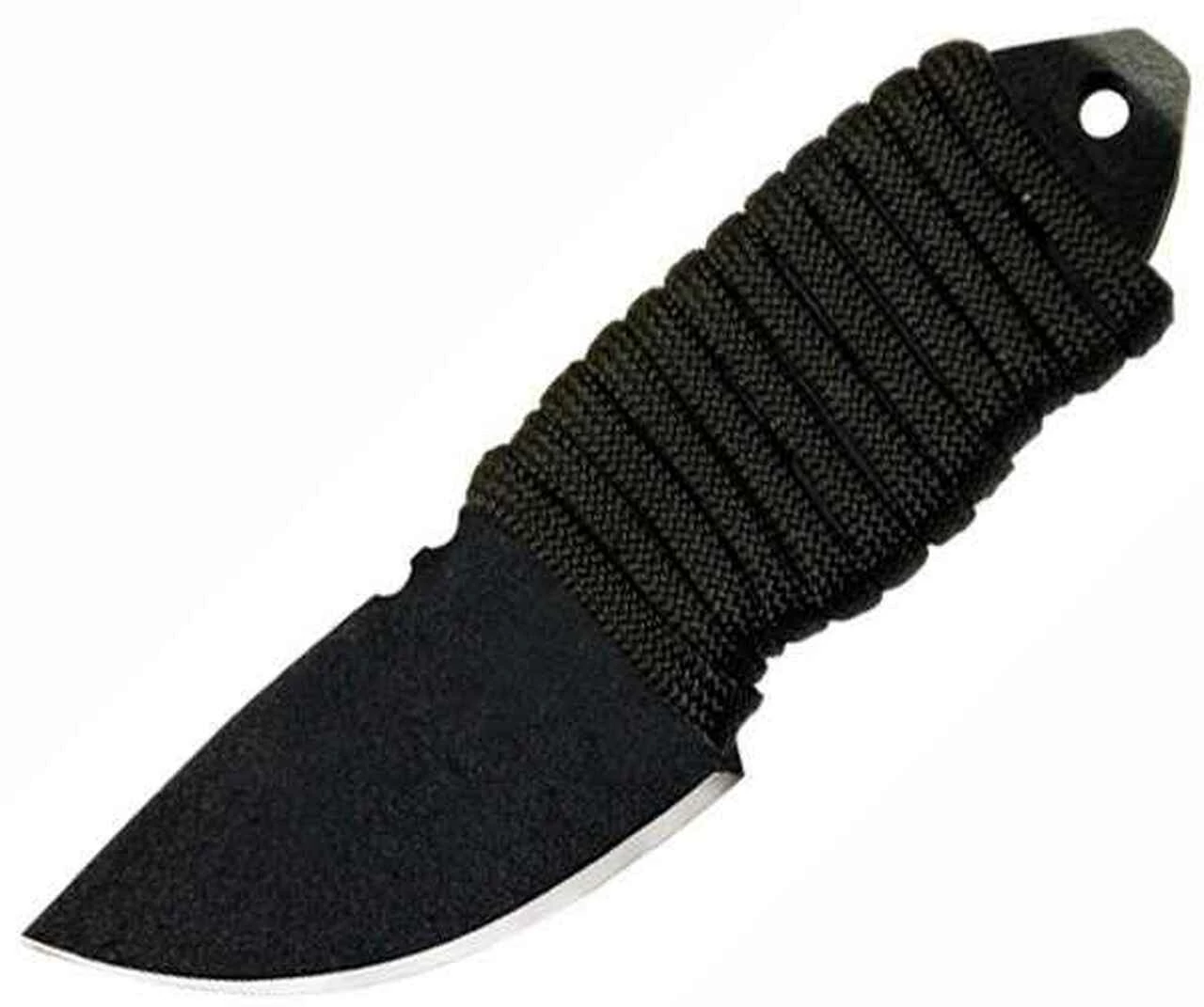 This knife features 1095 steel and black texture coated blades. Comes standard with black custom molded Kydex sheath with Para-Cord neck lanyard.