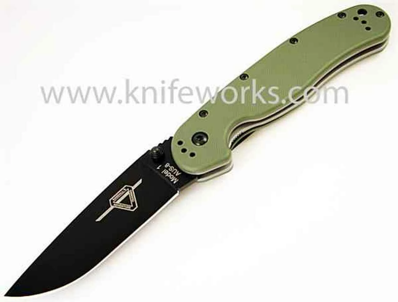 Ontario Rat Folder, Black Blade, OD Green Handle, Plain Edge