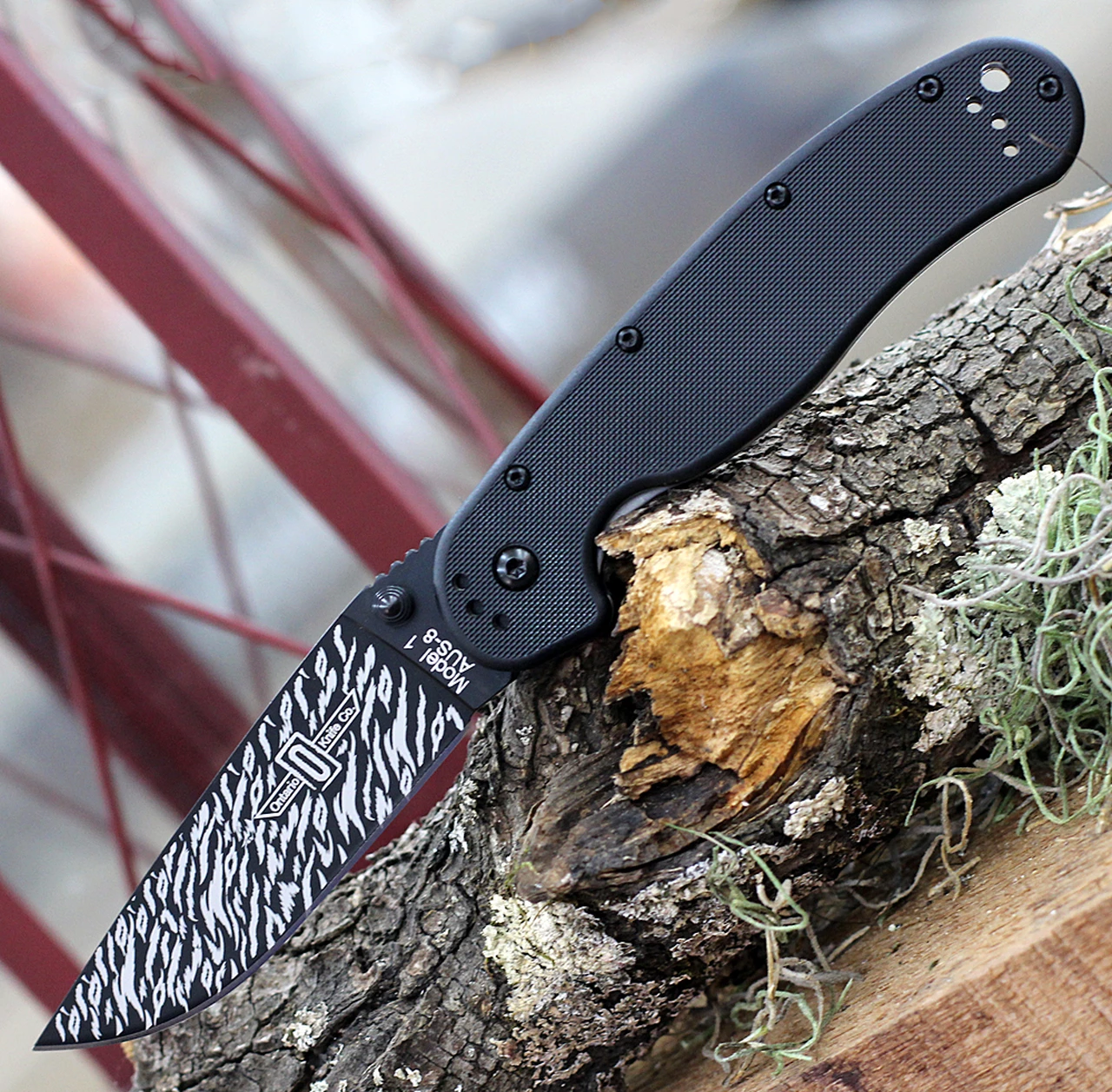 The Model 1 features a 4-way clip position, heavy-duty open post construction, razor-sharp AUS-8 blade, full flat grind, reversible thumb stud, precision pivot screw, lanyard hole, and ergonomic handles.