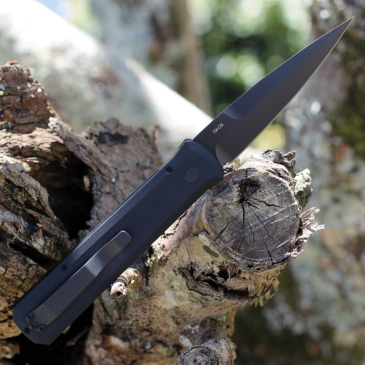 Pro-Tech Knives Godfather SWAT Automatic Knife – 4″ 154CM Black DLC Coated Stiletto Blade, Black Aluminum Handle with Black Button