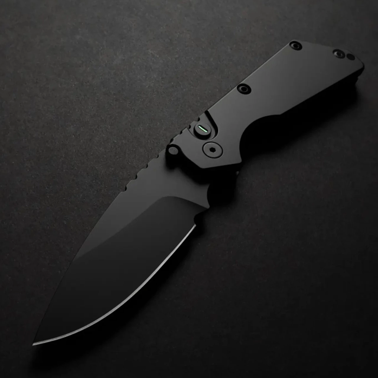 Pro-Tech Pro-Strider SnG Operator Automatic (2403-OP) – 3.5″ Black DLC Coated Drop Point Blade, Black Aluminum Handle with Tritium Push Button