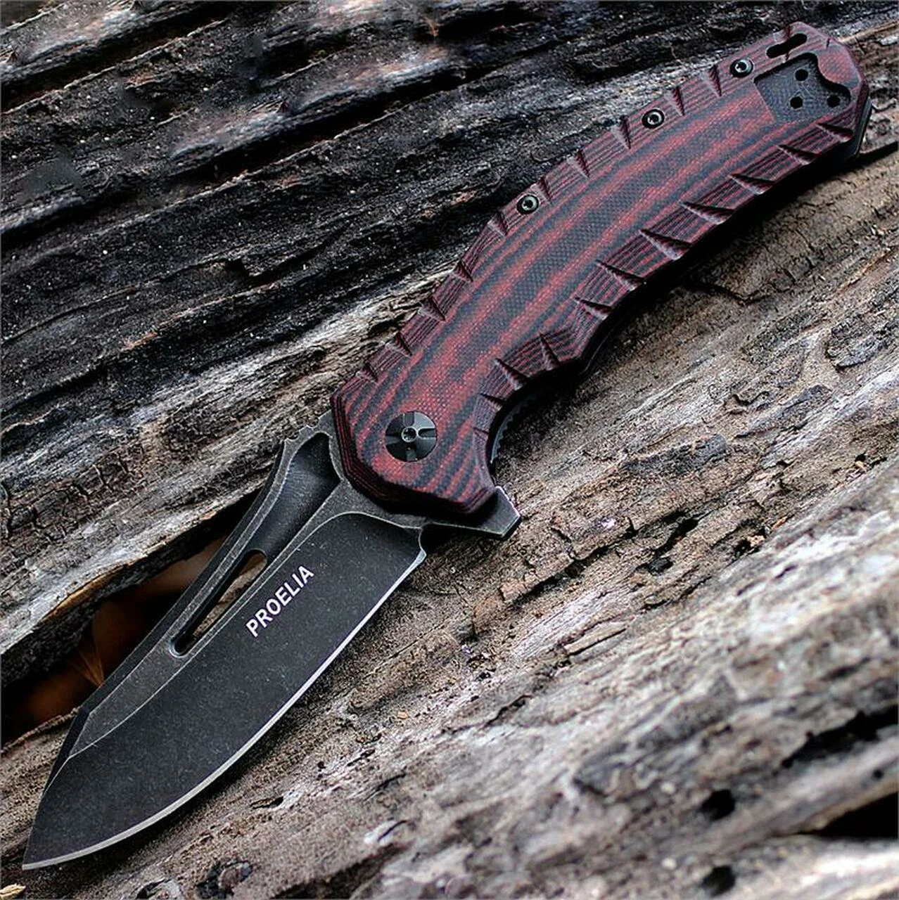 The 4 inch drop point syled blade is designed to be a heavy duty knife. The D2 blade is tough and is treated with Proelia’s 5 step heat treatment and has a black stonewashed finish. The handle is wrapped in 3-D machined red and black layered G-10 with finger groves that allow a perfect fit in your hands! The pocket clip is just one way to carry this knife, it also comes with a small laynard hole at the end of the handle! The blade opens smoothly using the flipper that is paired with a ball-bearing pivot. The heavy duty folder has a liner lock that is put through a carbidizing process that hardens the edge before the knife is assembled. The Proelia knives come with a spare pocket clip, a vertical/horizontal black nylon sheath, an adjustment tool, and Warranty Regristration Card!