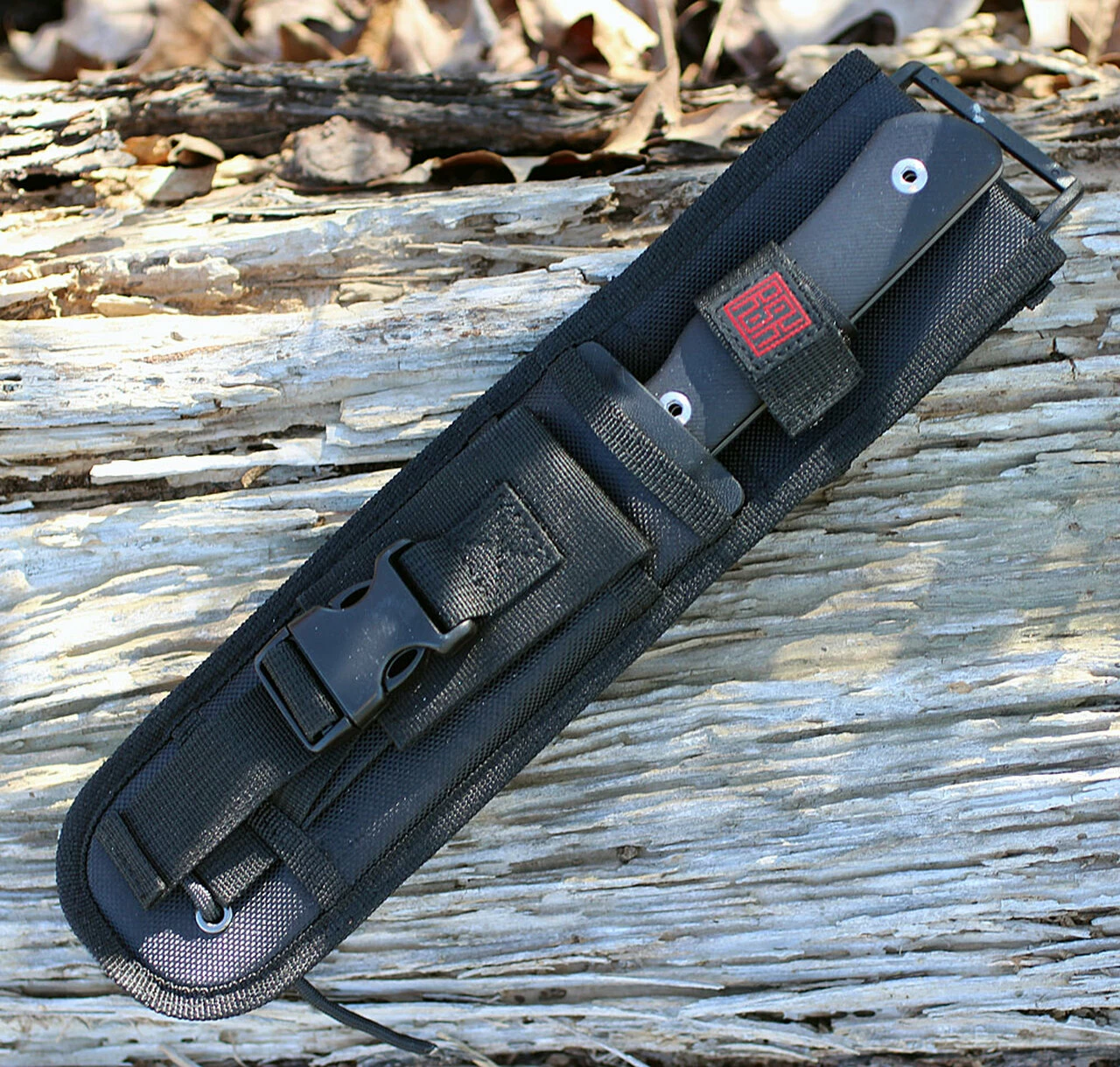 Following the fantastic success of the Buscrafts entry model, the Bushcraft Plus was developed for the most professional of knife users. The full-tang design 4.5mm in thickness and 116mm in length is fantastically suited for outdoor survival and exploration. Developed with 14C28N Sandvik steel, rust is a thing of the past, increased flexibility and sharpening ability are what this knife is about. The handles are fastened with two screws, which can be loosened to give access to a milled space for storage, coupled with this, is a discreet lanyard hole that is hidden in the knife’s back. This knife also boasts the option of the Scandi grind or the new full flat grind finish. The attached Kydex sheath is also compatible with the TekLock system and integrated with a high-quality nylon bag.