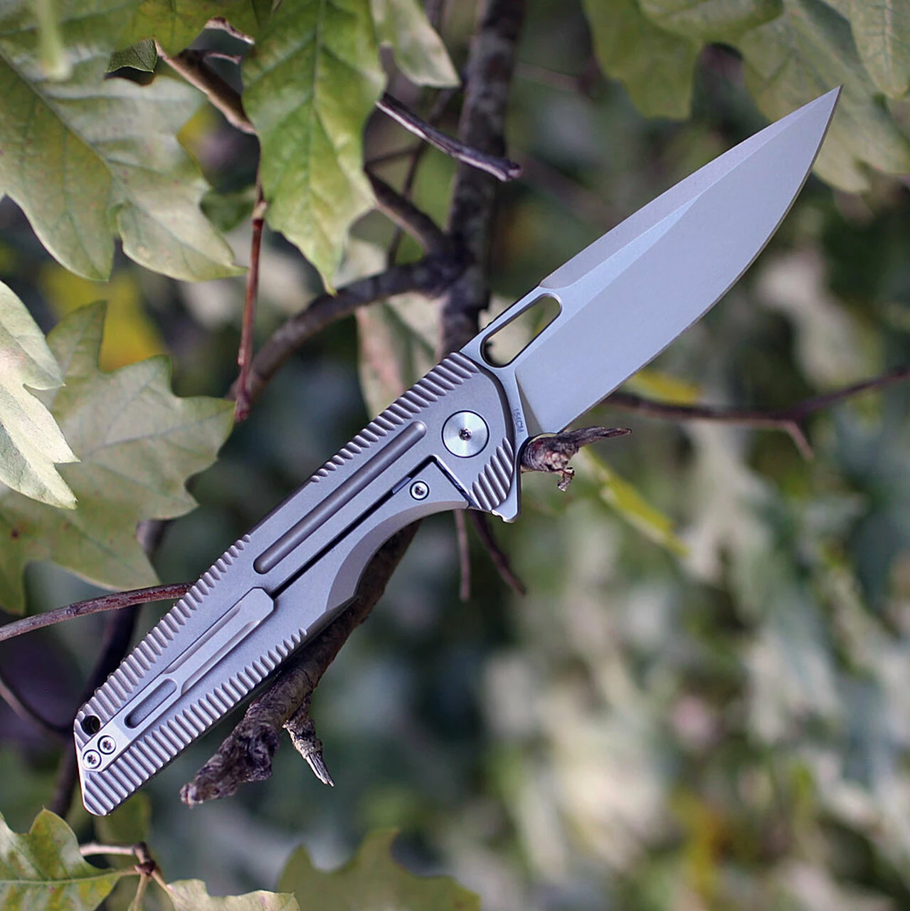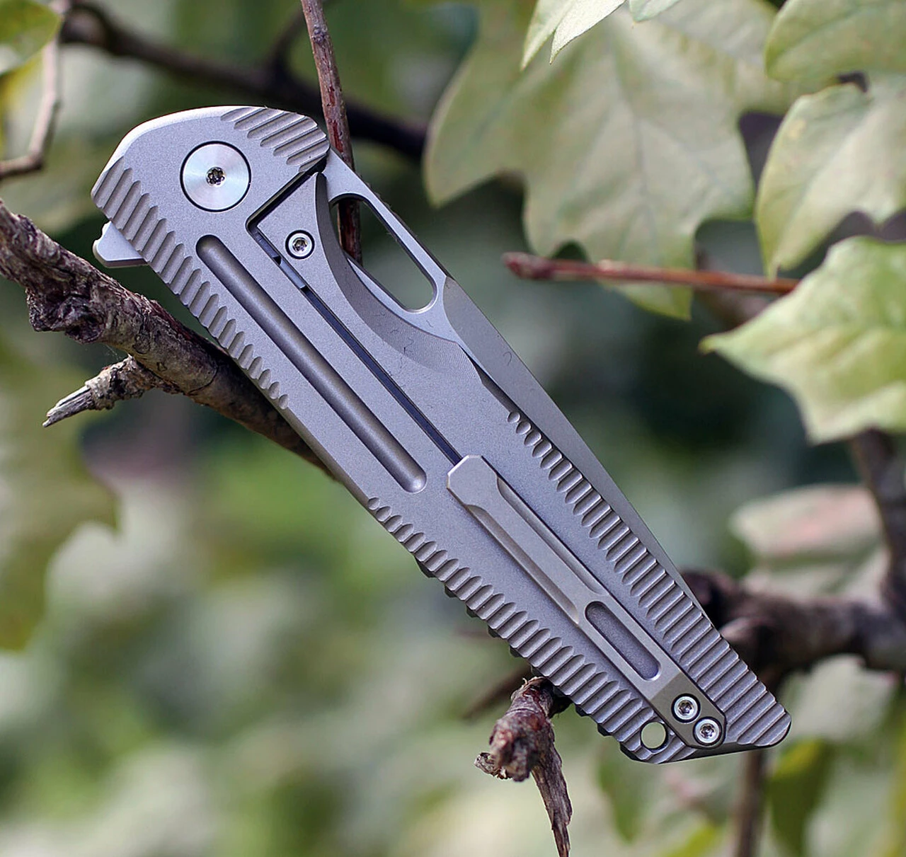 Rike Knife 802GOD Framelock, 3.75″ 154CM Plain Blade, OD Green Titanium/G-10 Handle